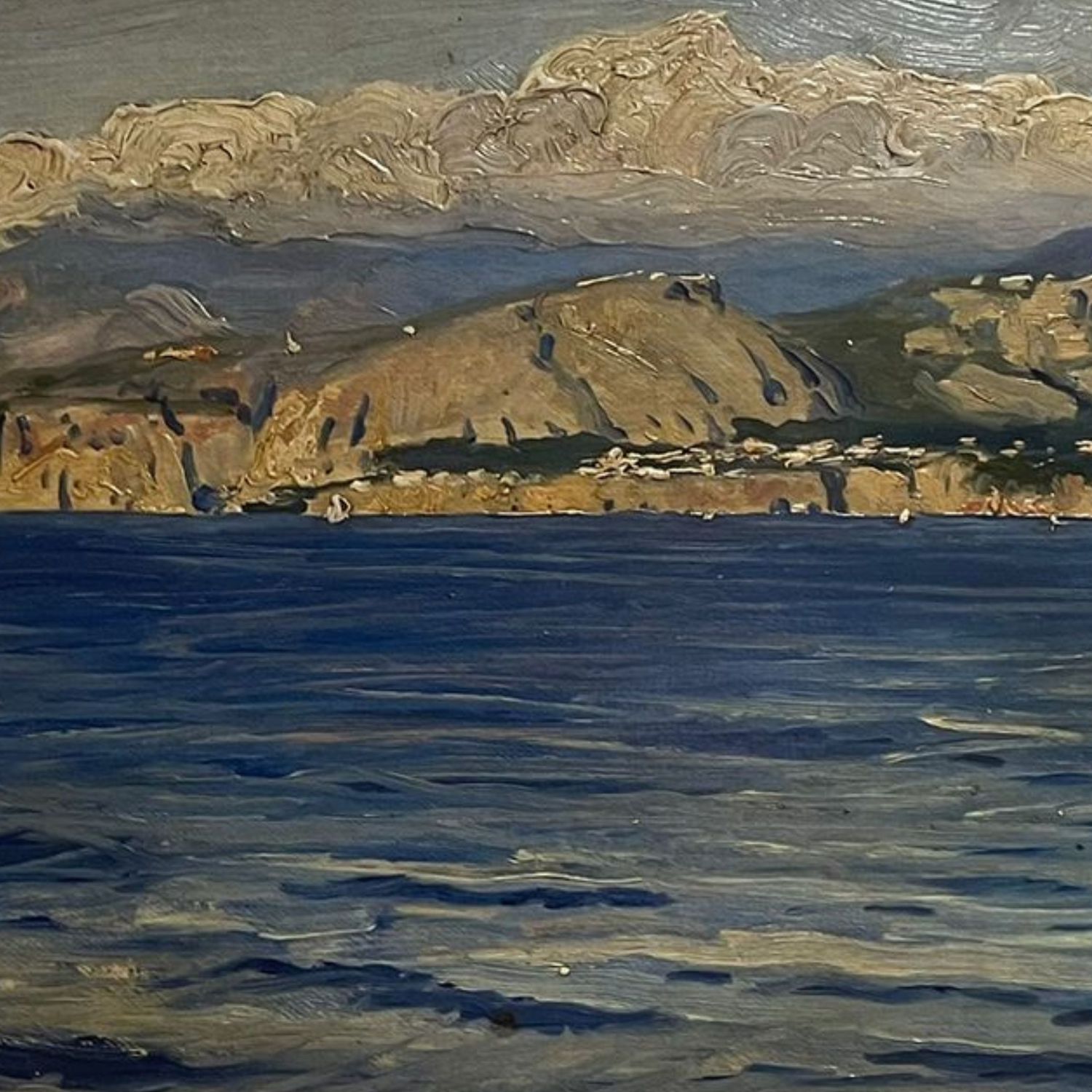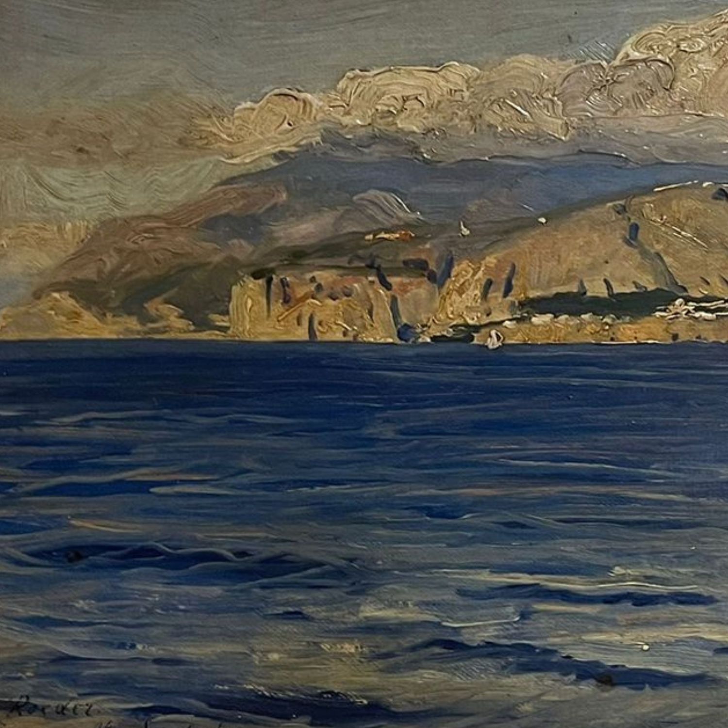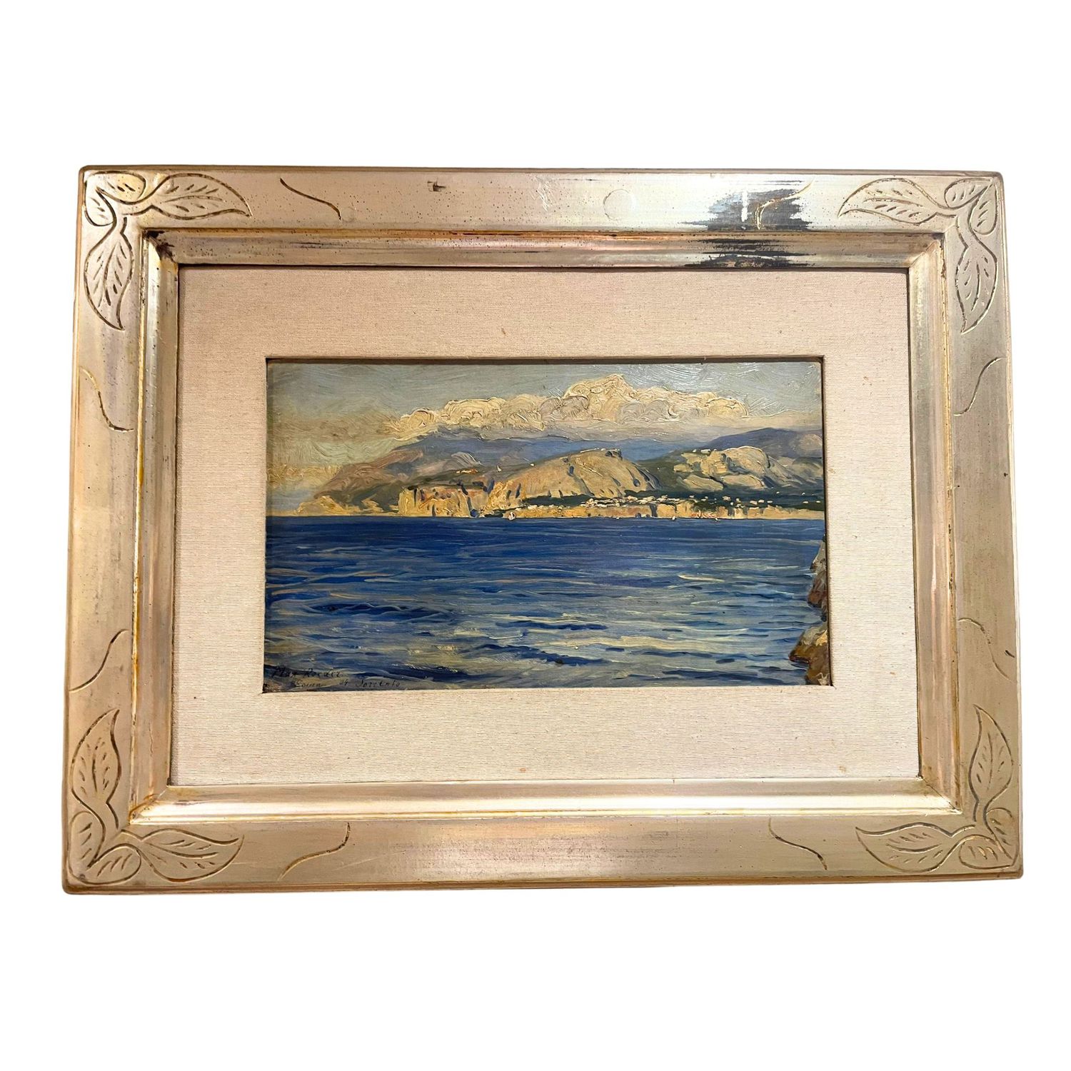 Dipinto olio su tela, periodo XIX/XX secolo scuola Italiana, raffigurante Paesaggio marino.