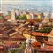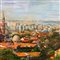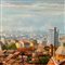 Dipinto olio su tela applicata su tavola, periodo XX secolo scuola Italiana, raffigurante Città (luogo imprecisato).