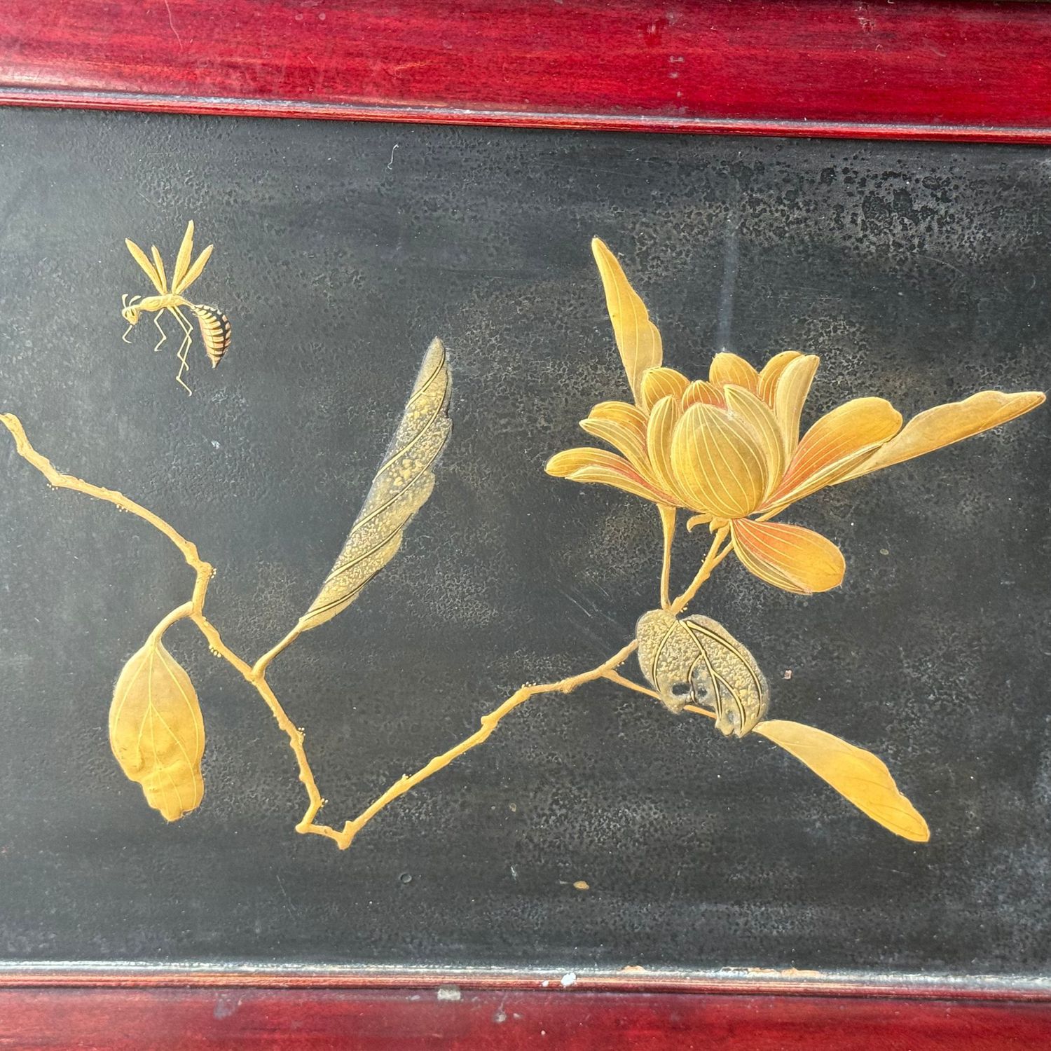 Separè a due battenti in legno laccato e decorato con figure di area...