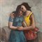 Dipinto tecnica mista su pannello, periodo XX secolo scuola Italiana, raffigurante L'abbraccio.