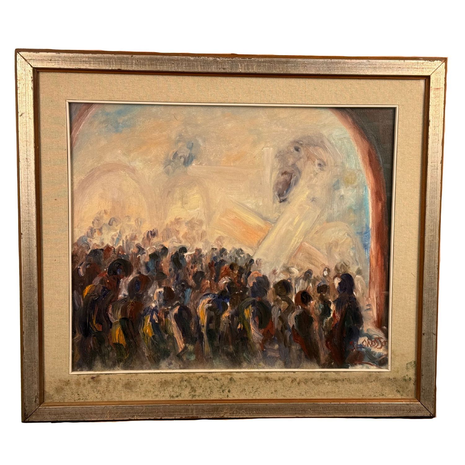 Dipinto olio su tela, periodo XX secolo scuola Europea, raffigurante Scena religiosa.