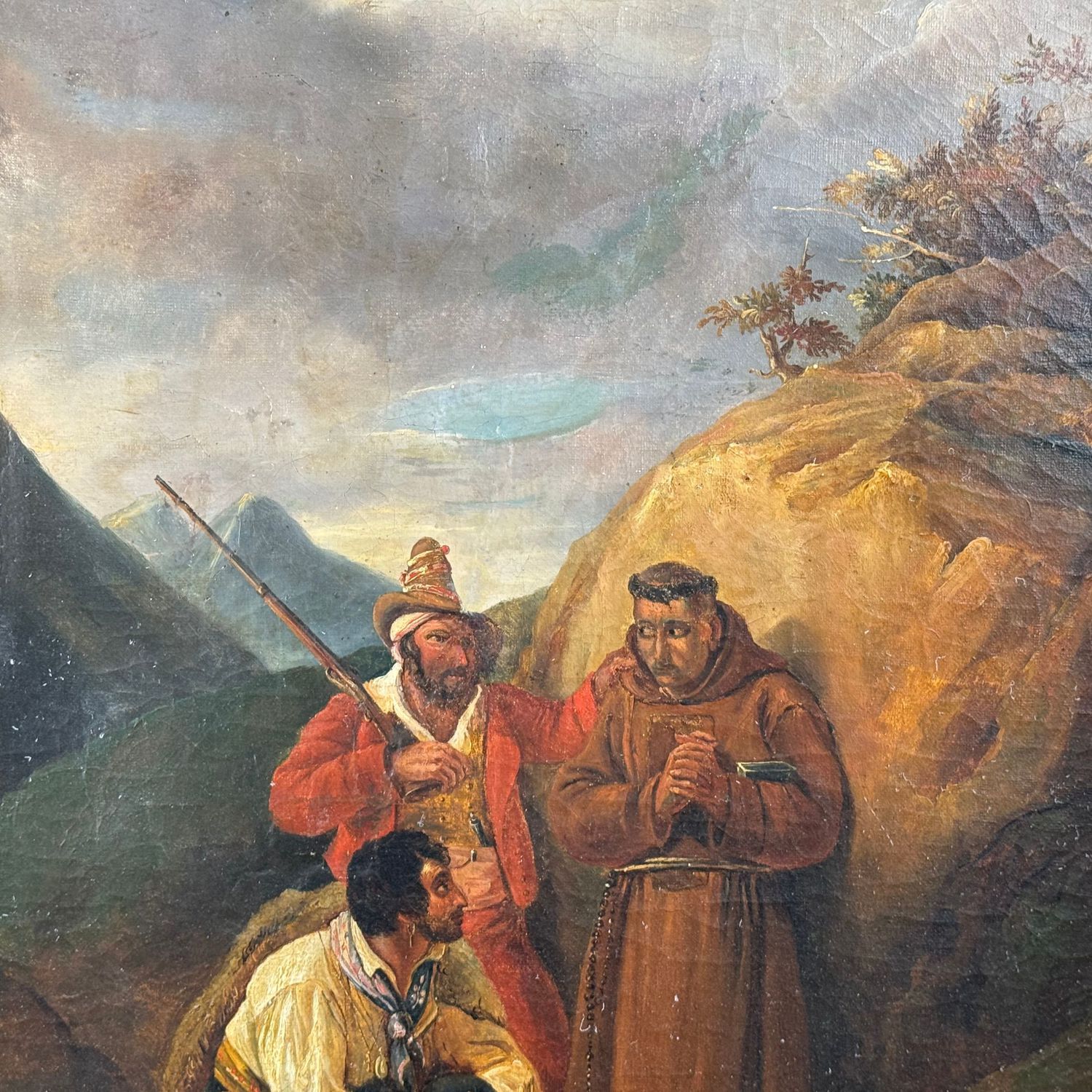 Dipinto olio su tela, periodo XIX secolo scuola Italiana, raffigurante Briganti.