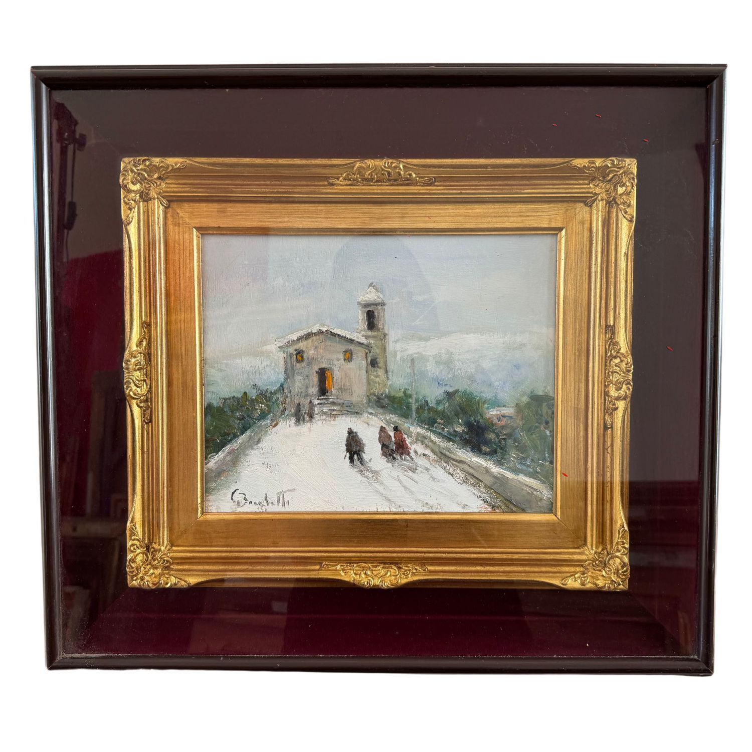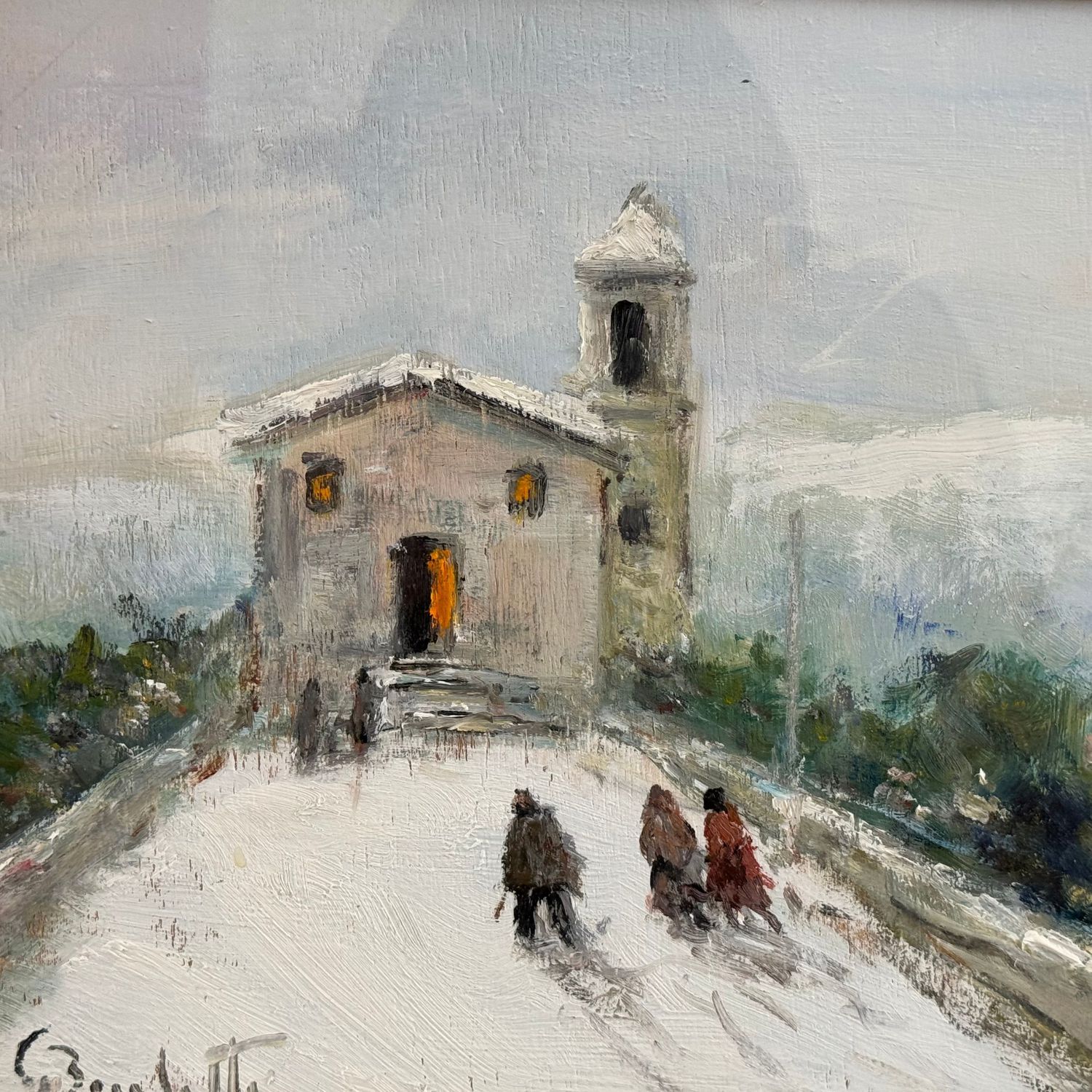 Dipinto olio su tavola, periodo XX secolo scuola Italiana, raffigurante Strada di montagna.