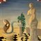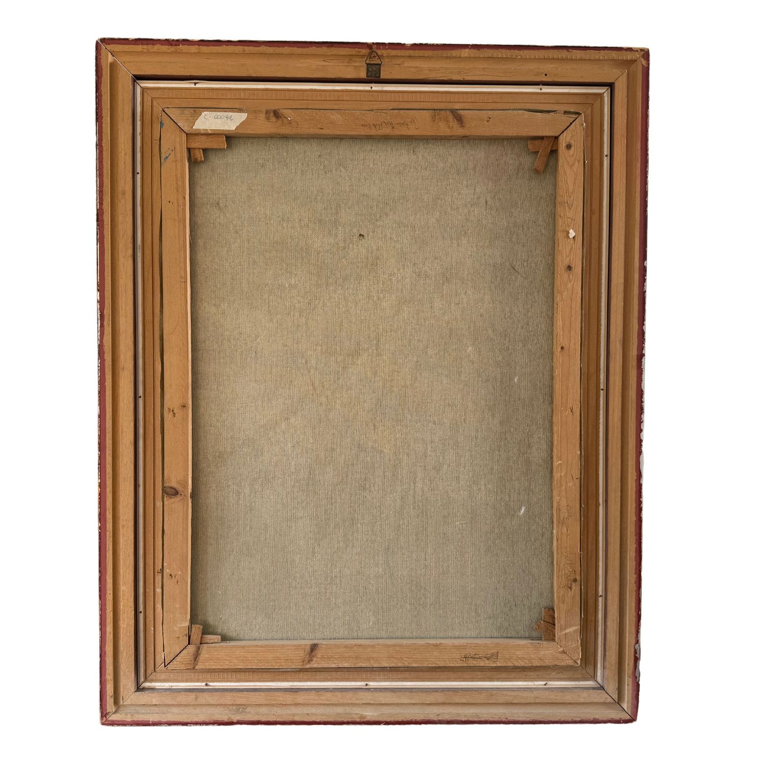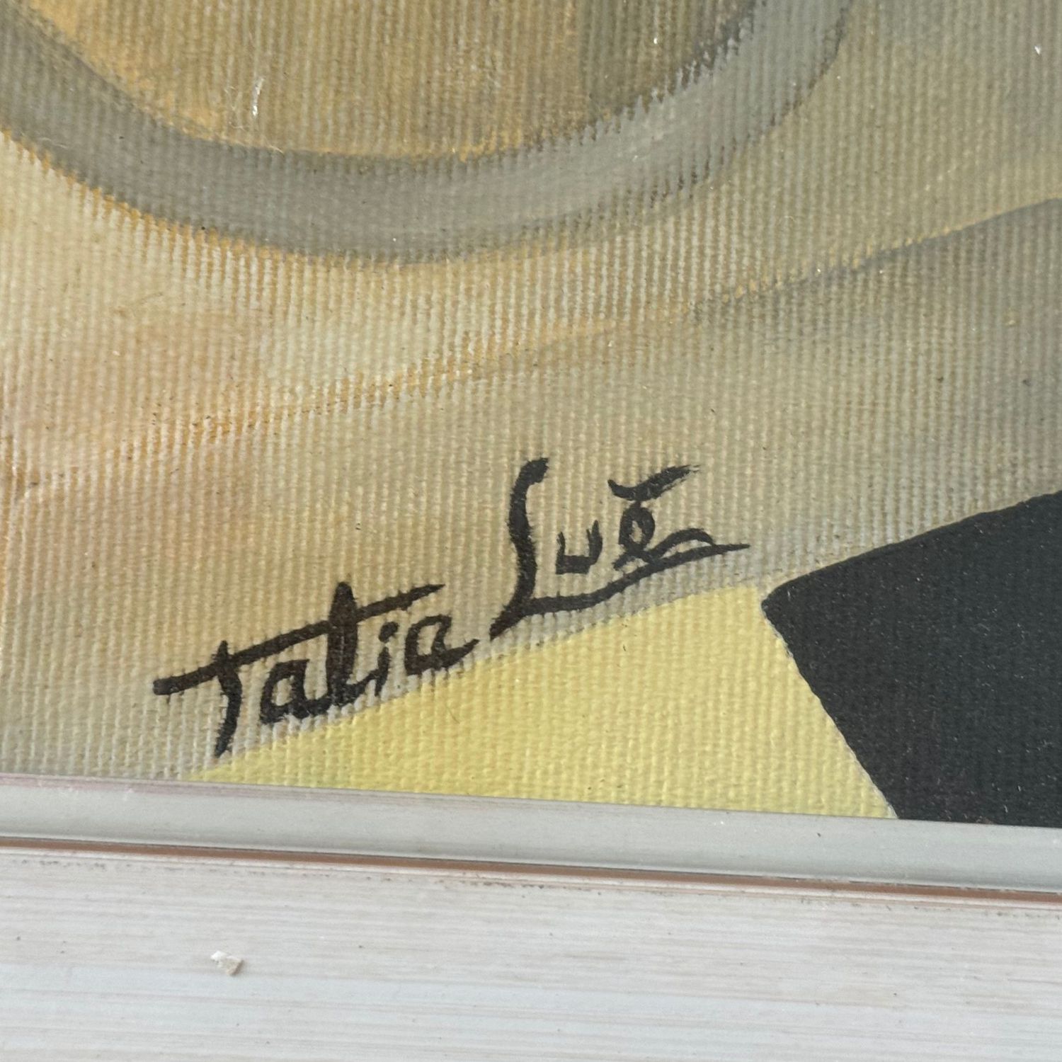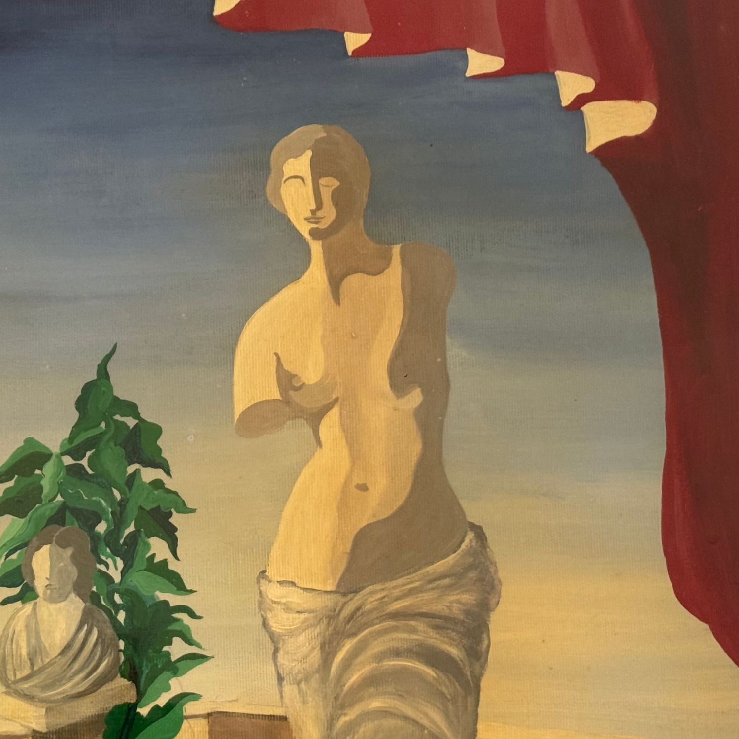 Dipinto olio su tela da artista contemporaneo, raffigurante Sculture in terrazza.