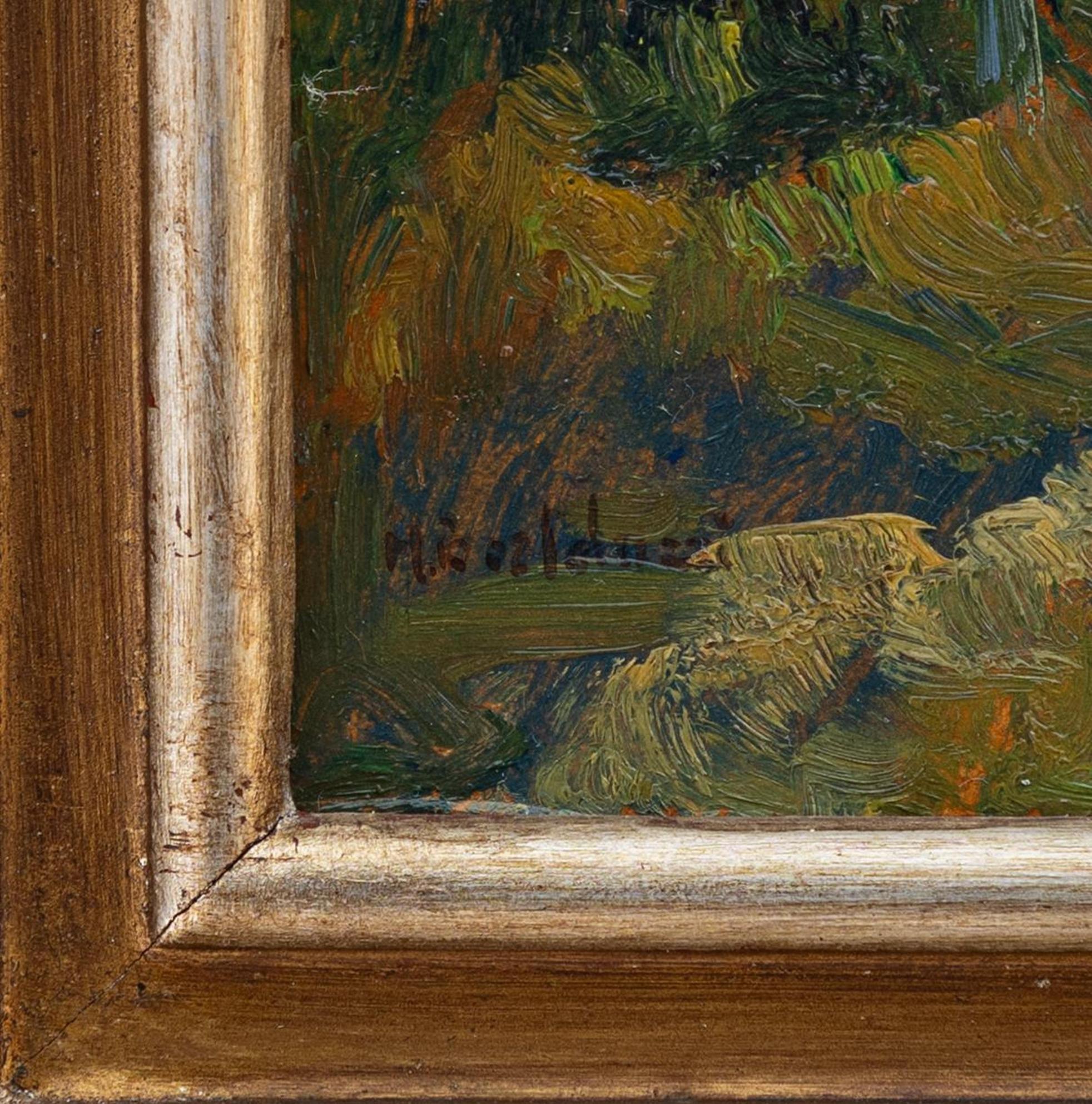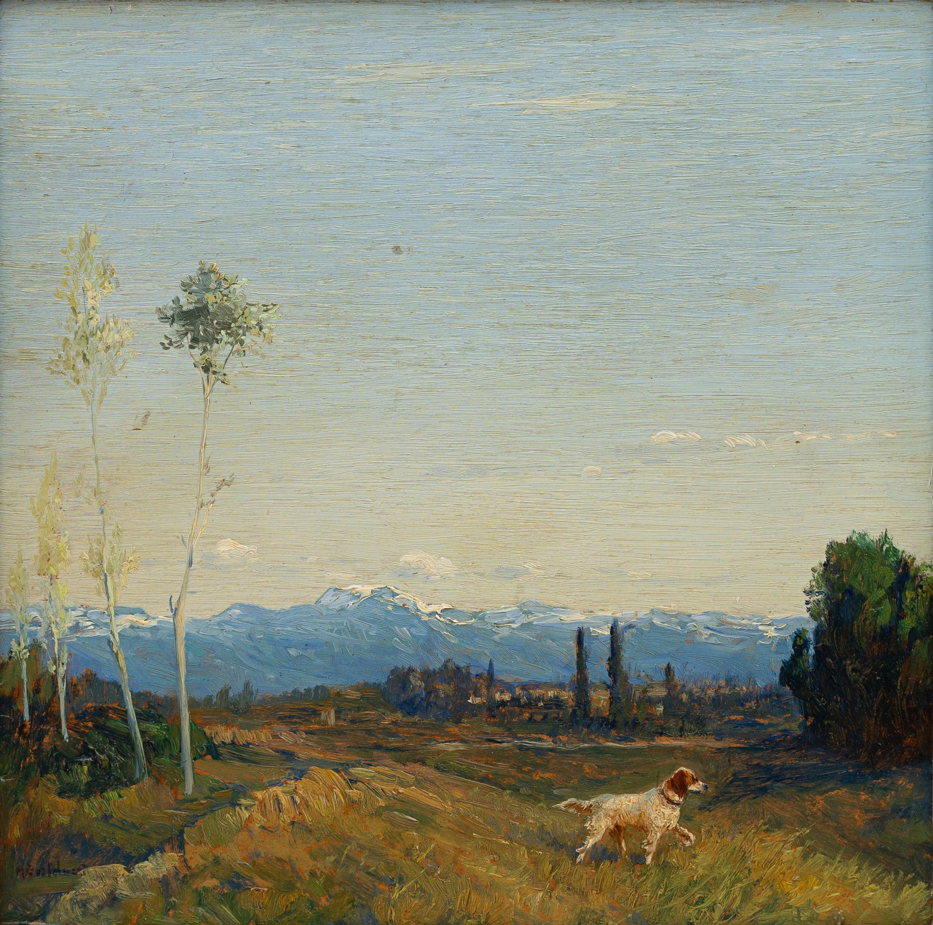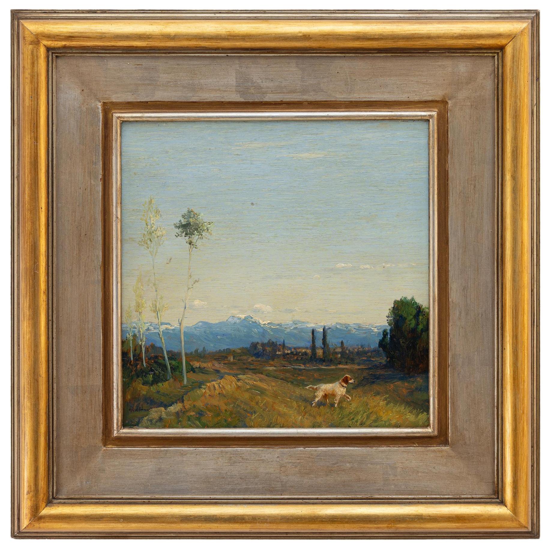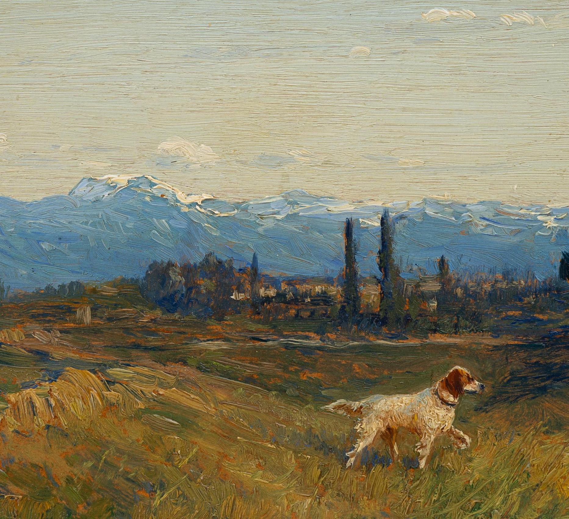 Millo Bortoluzzi - Cane da caccia - Treviso 1868 - Dolo 1933 - Olio su cartone cm 38x38
