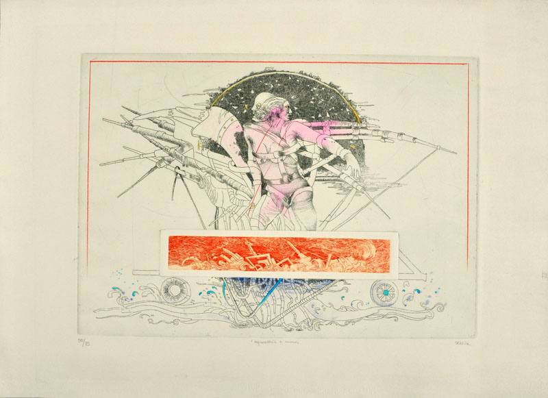 ITALO SCELZA Senza titolo Acquaforte a colori acquerellata a mano dall’autore – es. 50/75 cm. 56x76 Firma e tiratura in basso