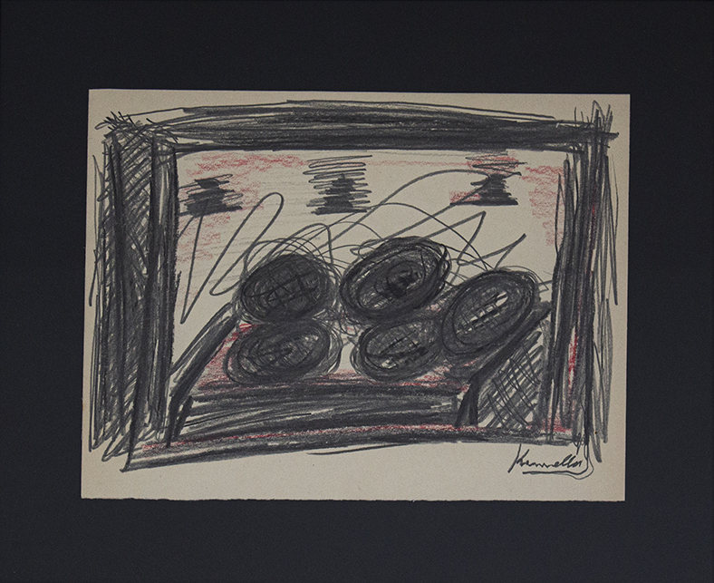Jannis Kounellis, Carboncino su carta, 22x29cm, Senza titolo, 1990; Autentica dell'artista su foto.