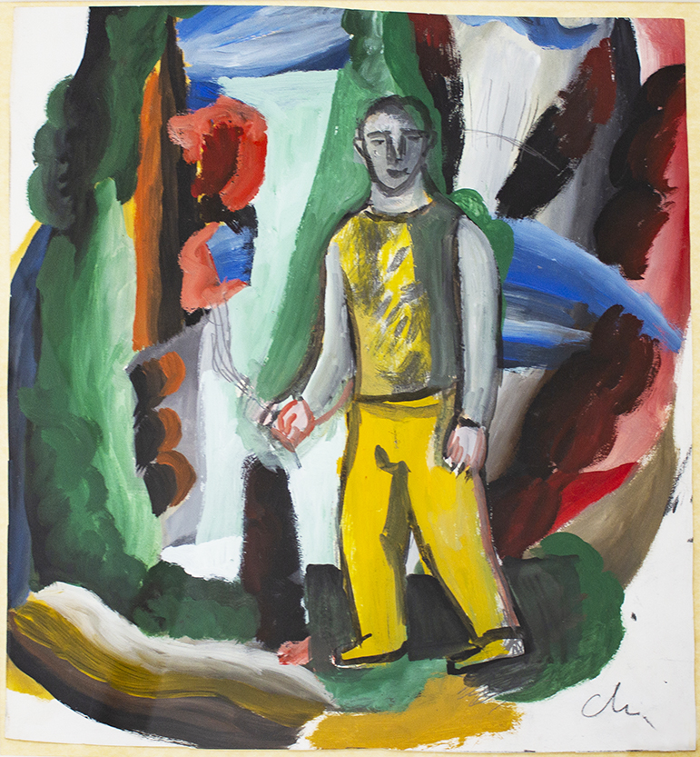 Sandro Chia, Tecnica mista su carta, 54x52cm, Senza titolo; Autentica dell'artista su foto