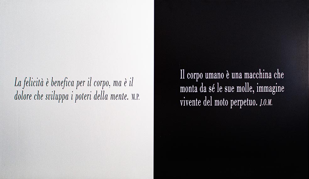 Joseph Kosuth, Serigrafia nera su alluminio, 60x100cm, Mens agitat molem, 2003; Certificato su foto