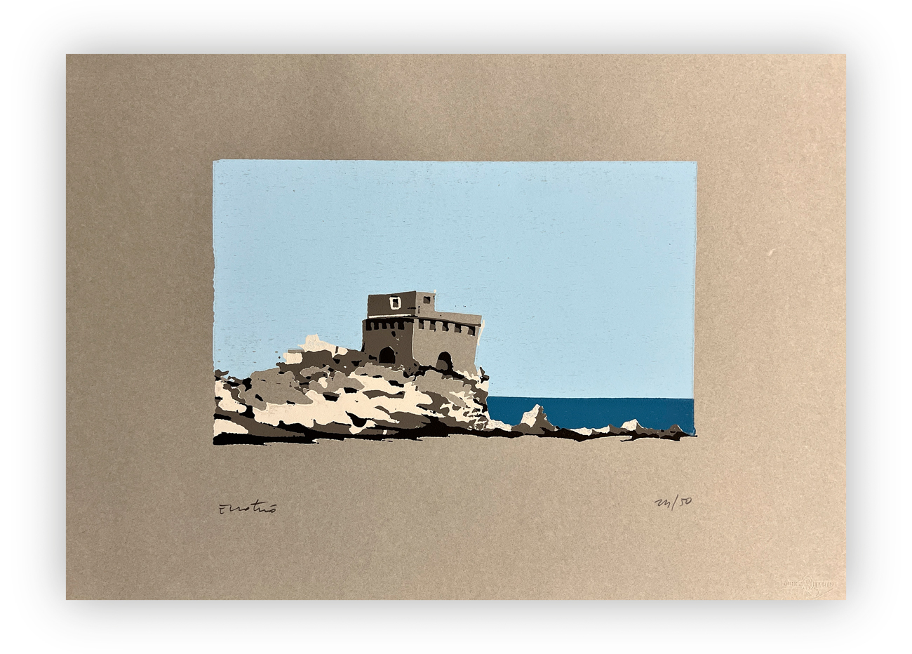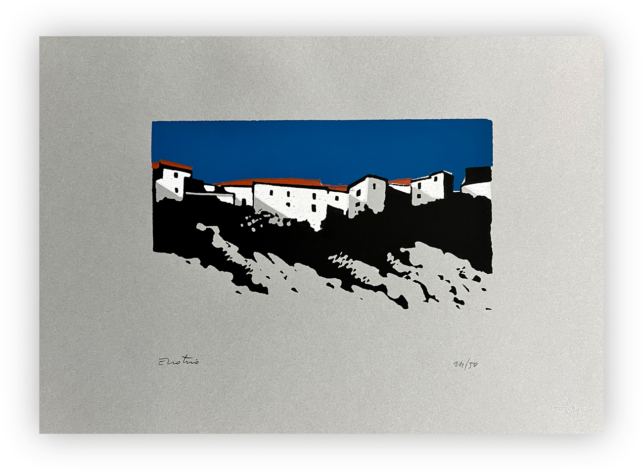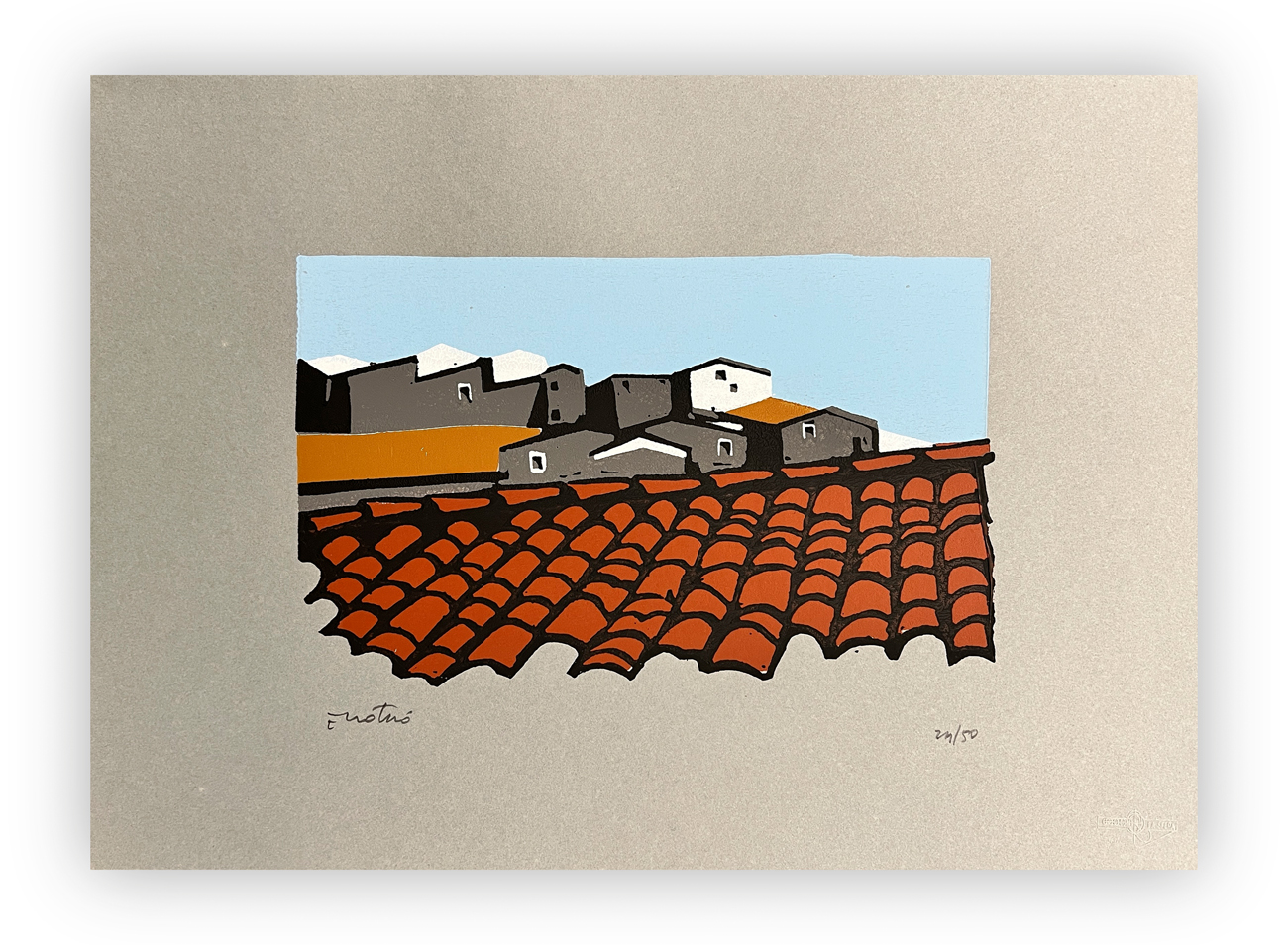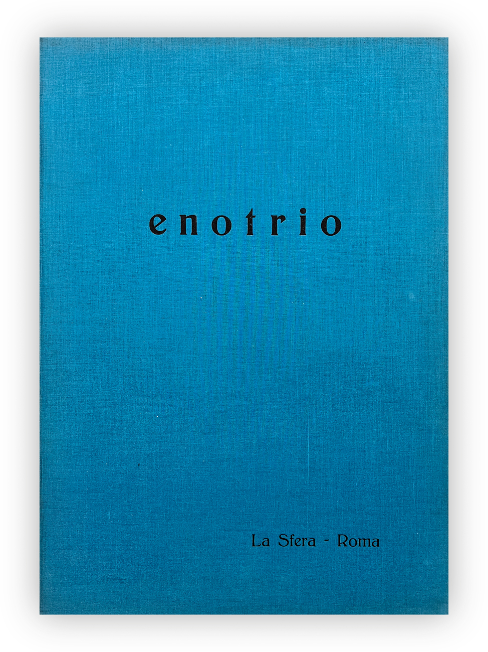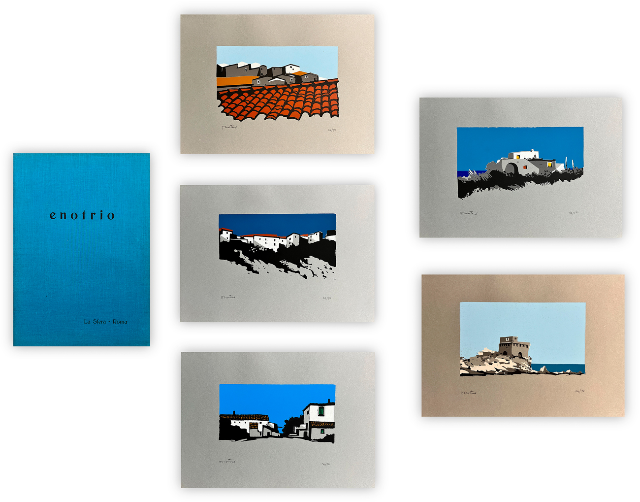 Cartella contenente presentazione di Carlo Giacomozzi e 5 linoleografie di Enotrio, ciascuna recante firma e numerazione (Esemplari 24/50) a matita al fronte e timbro a secco dell'Editore