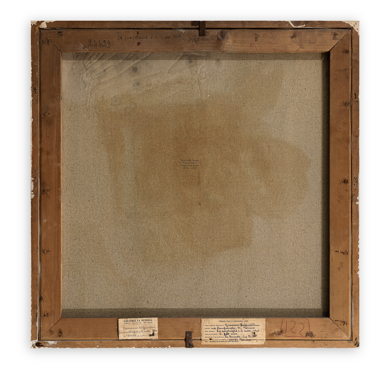Etichetta della Galleria La Bussola (TO) con relativo numero di repertorio al retro