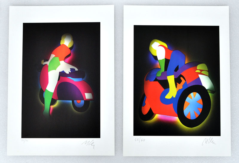 MARCO LODOLA Lotto unico di due litografie a colori - Ragazza in vespa – es. 35/70 cm. 48x34 - Ragazza in moto – es. 13/60 cm. 48x34 Firma e tiratura in basso