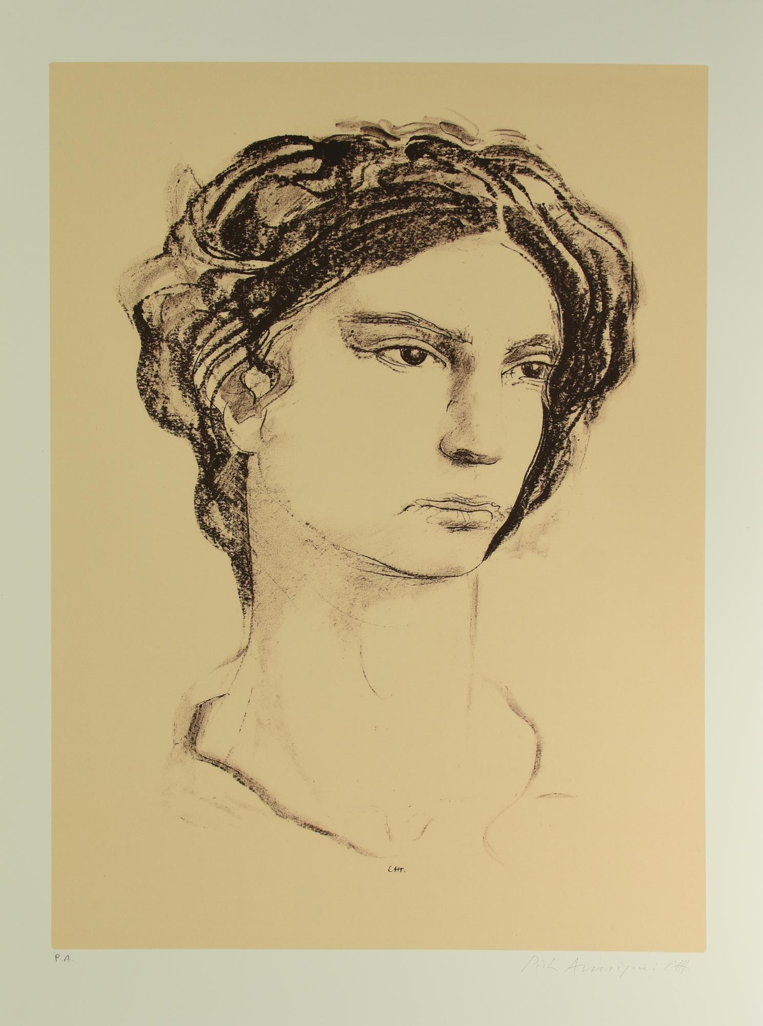 Pietro Annigoni (1910 - 1988) RITRATTO FEMMINILE litografia, cm 70x50; es....