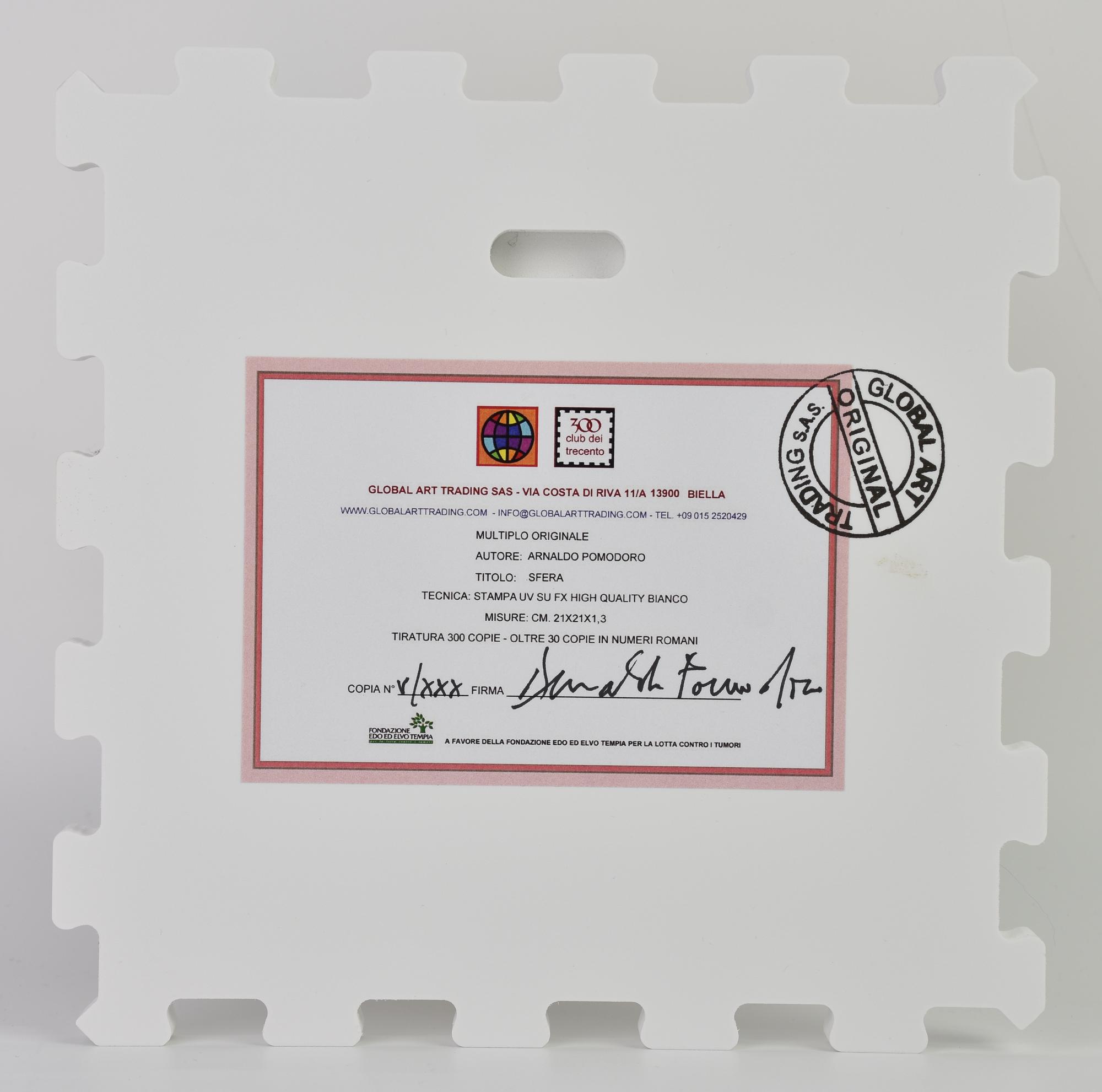 Arnaldo Pomodoro (1926) SFERA stampa UV su FX high quality bianco, cm...