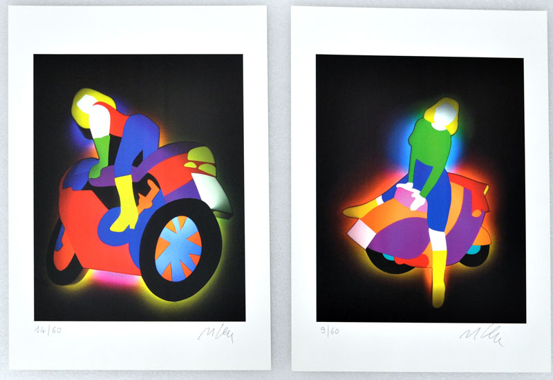 MARCO LODOLA Lotto unico di due litografie a colori - Ragazza in moto – es....