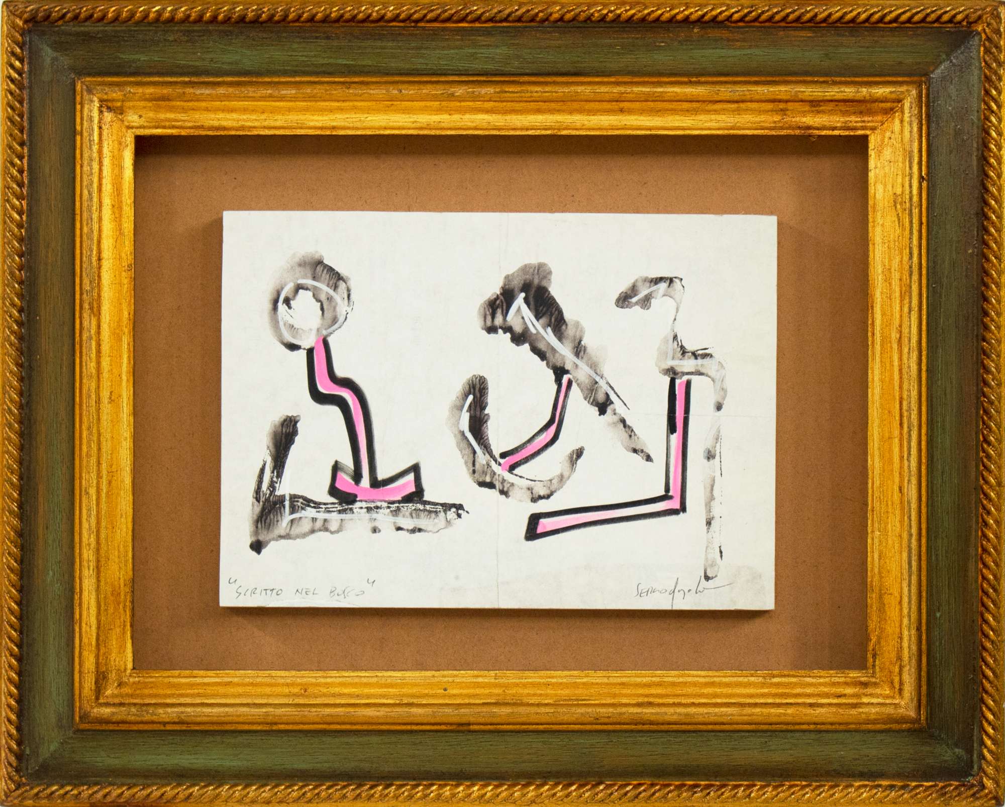 Sergio Dangelo, Scritto nel bosco, anni Settanta, tecnica mista su carta, cm 20x28, autentica a cura dell'artista