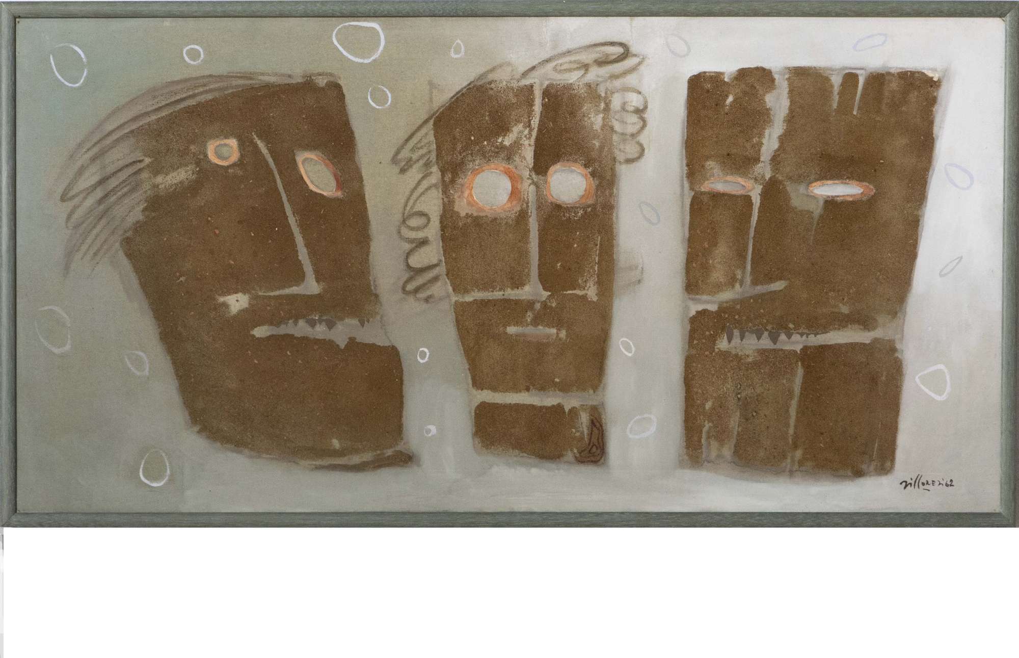 Franco Villoresi, Affinità famigliari, 1962, olio su tela, cm 60x120