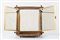 Specchio da viaggio, fine XIX secolo cm 27x27x16 richiudibile, a tre pannelli interni, appoggio in finto bambù, sull'anta richiudibile, decorazione ispirata al movimento "Japonisme", difetti. Reca inciso in alto Patent n.182635, 26 sept. 1876. Sulla sicurezza reca inciso BREVETE SGDG, PATENTED 4876