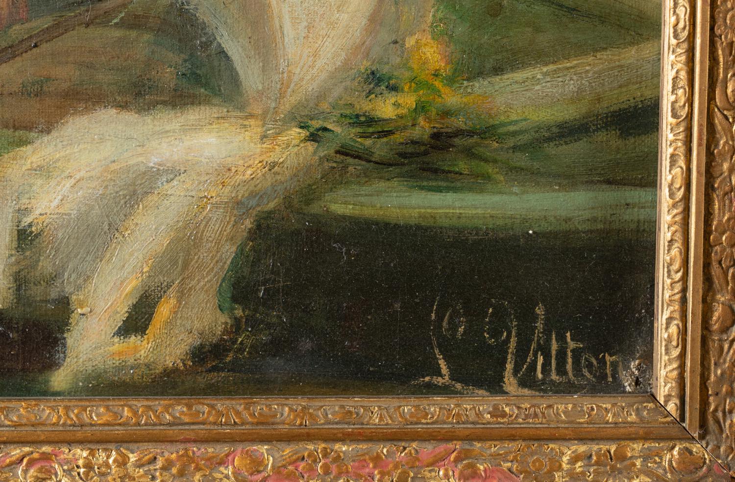 Gita sul fiume, inizio del XX secolo cm 38x46 olio su tela. Opera firmata in basso a sinistra