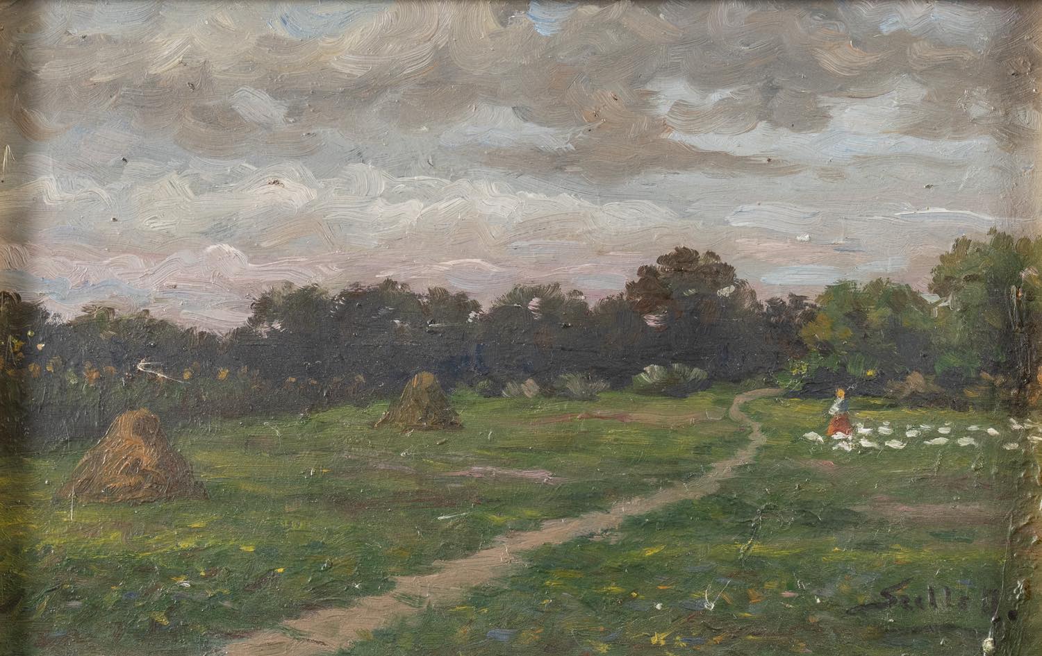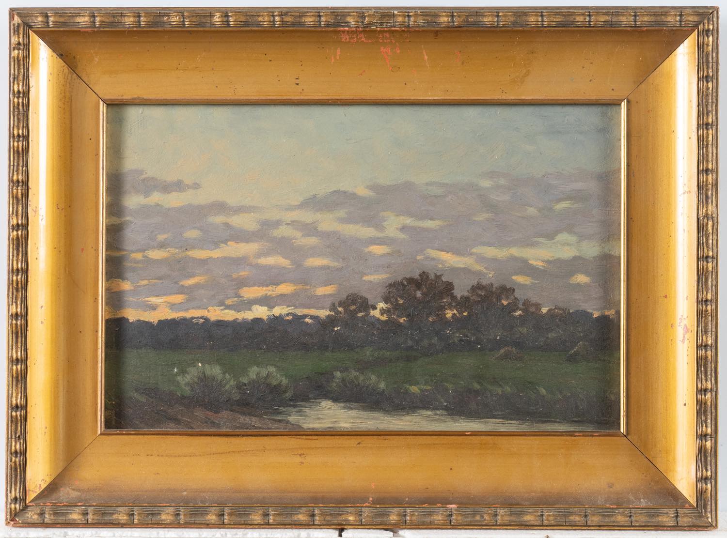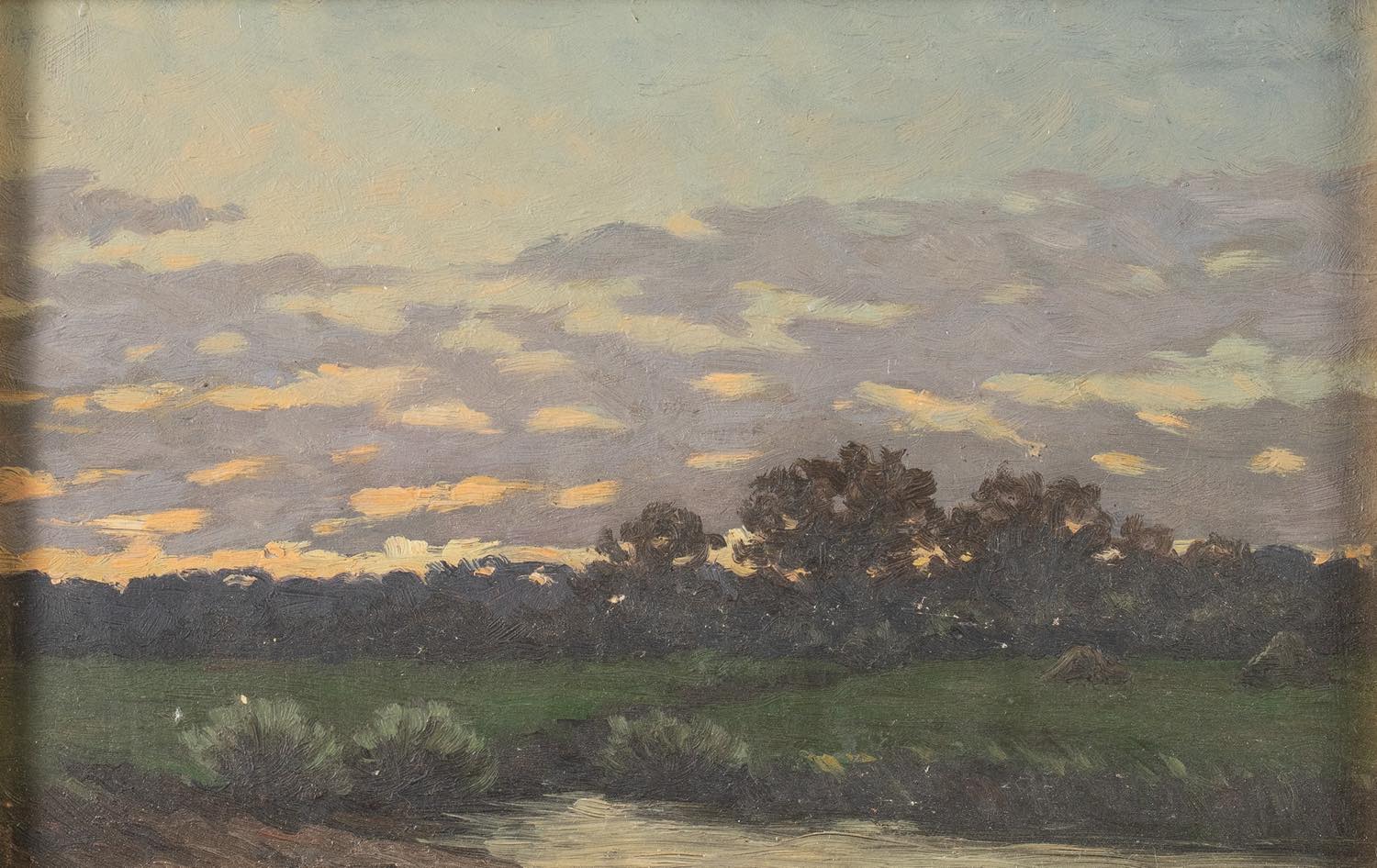 Coppia di paesaggi, inizio del XX secolo cm 22x34, cm 20,5x33,5 olio su tavola. Una delle due opere è firmata in basso a destra