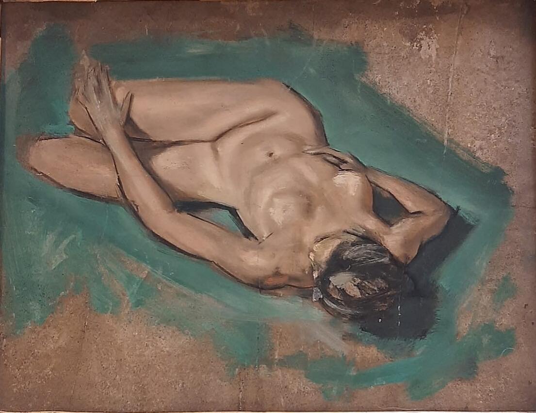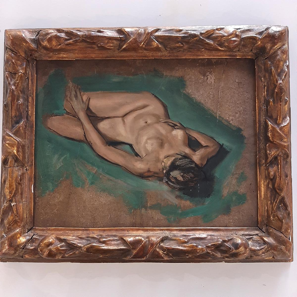 Nudo femminile disteso, XX secolo cm 28x37 olio su cartone