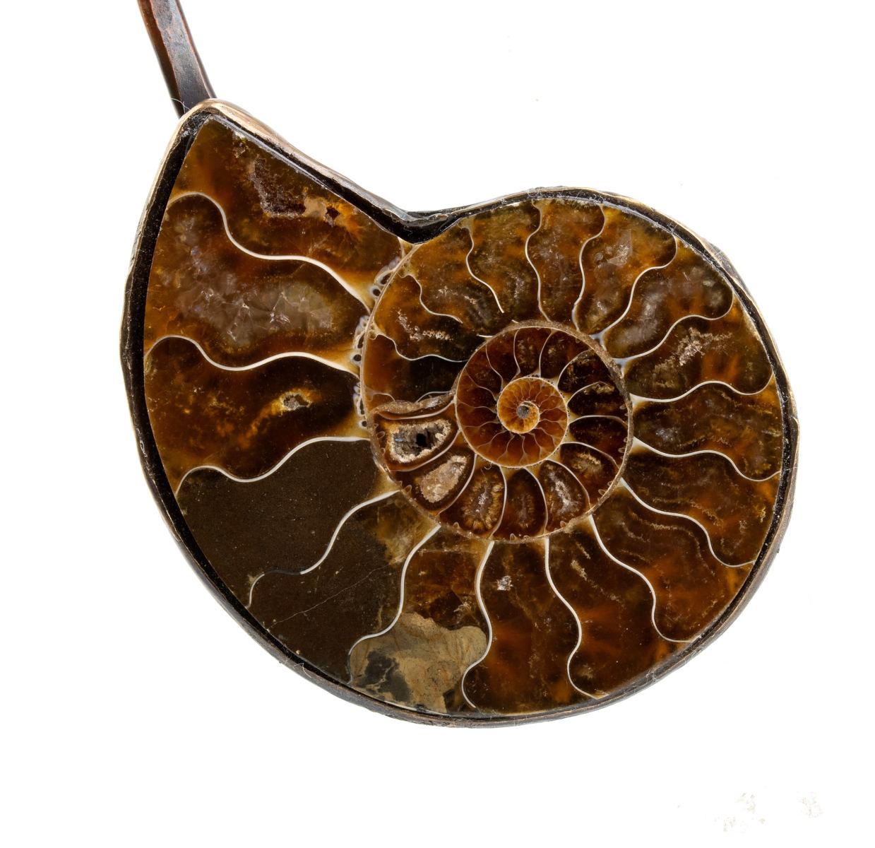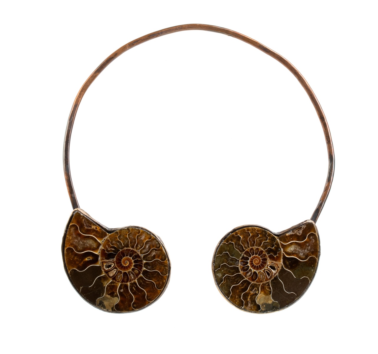 girocollo rigido in bronzo e cefalopode fossile