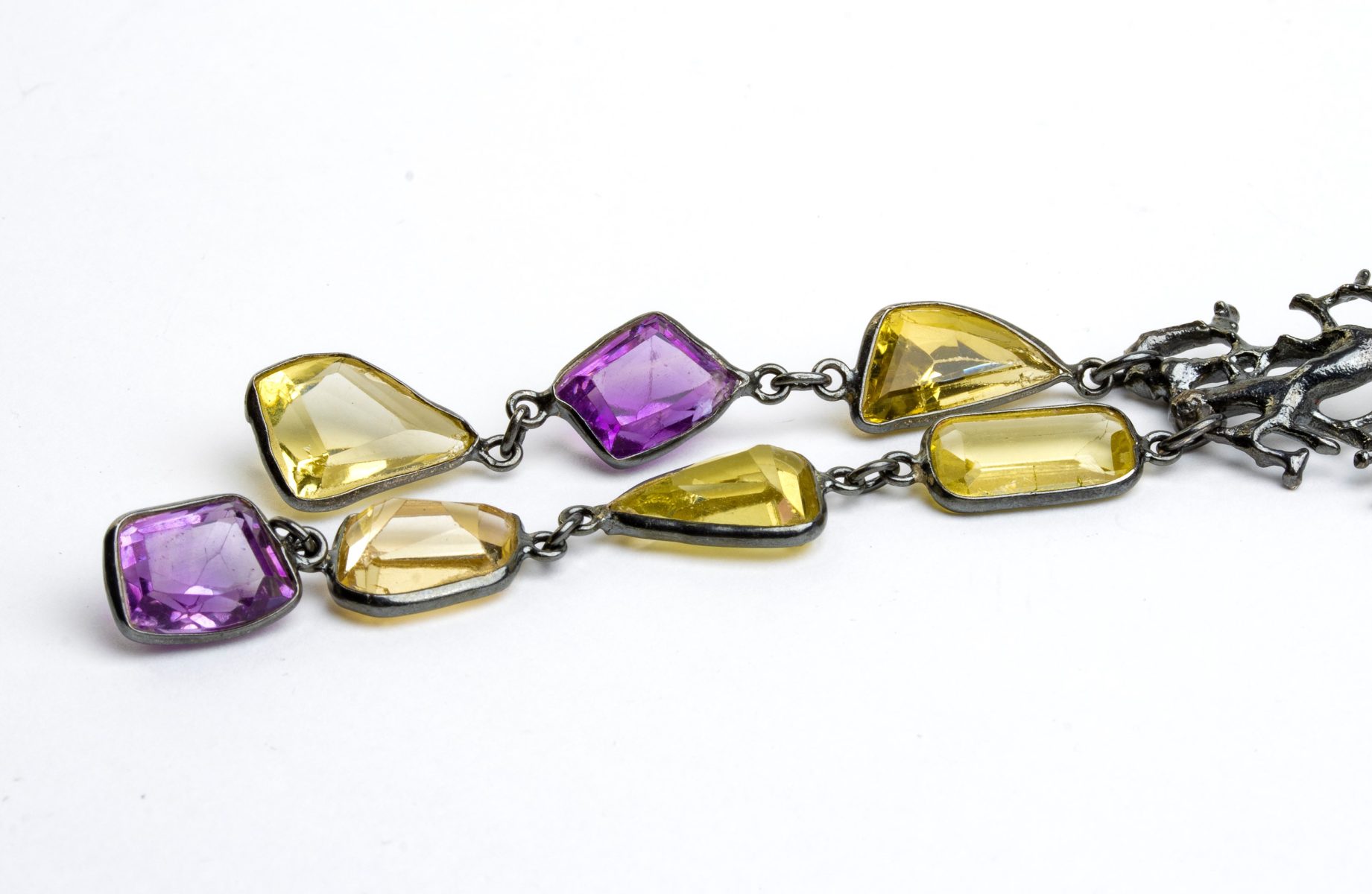 con motivo a rete elettroformata, impreziositi da ametiste e quarzi citrini. Firmato ISABELLA ASTENGO.
