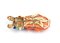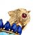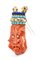 con corallo Cerasuolo (corallium elatius), scolpito raffigurante una maschera, occhi in diamanti, coronetta decorata con gocce di lapislazzuli, cabochon di paste vitree azzurre e piccoli cabochon di spinelli rossi.