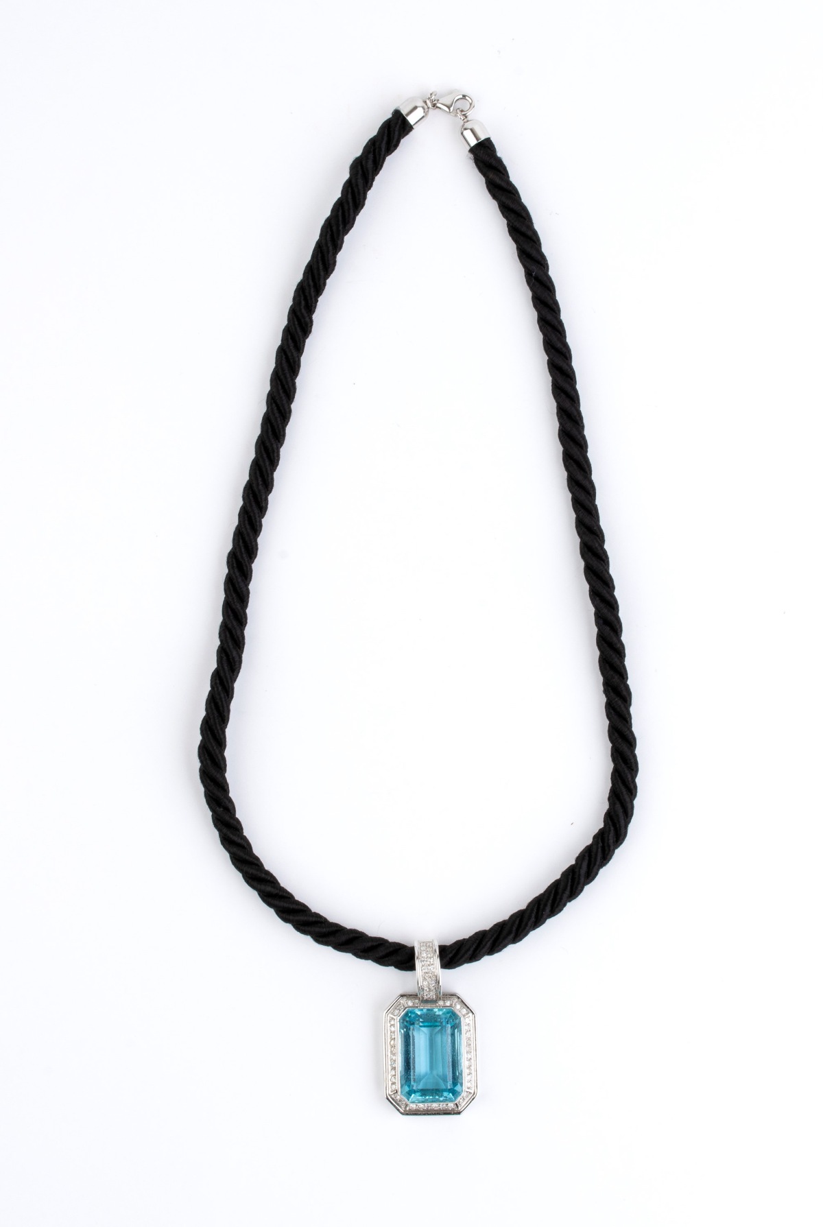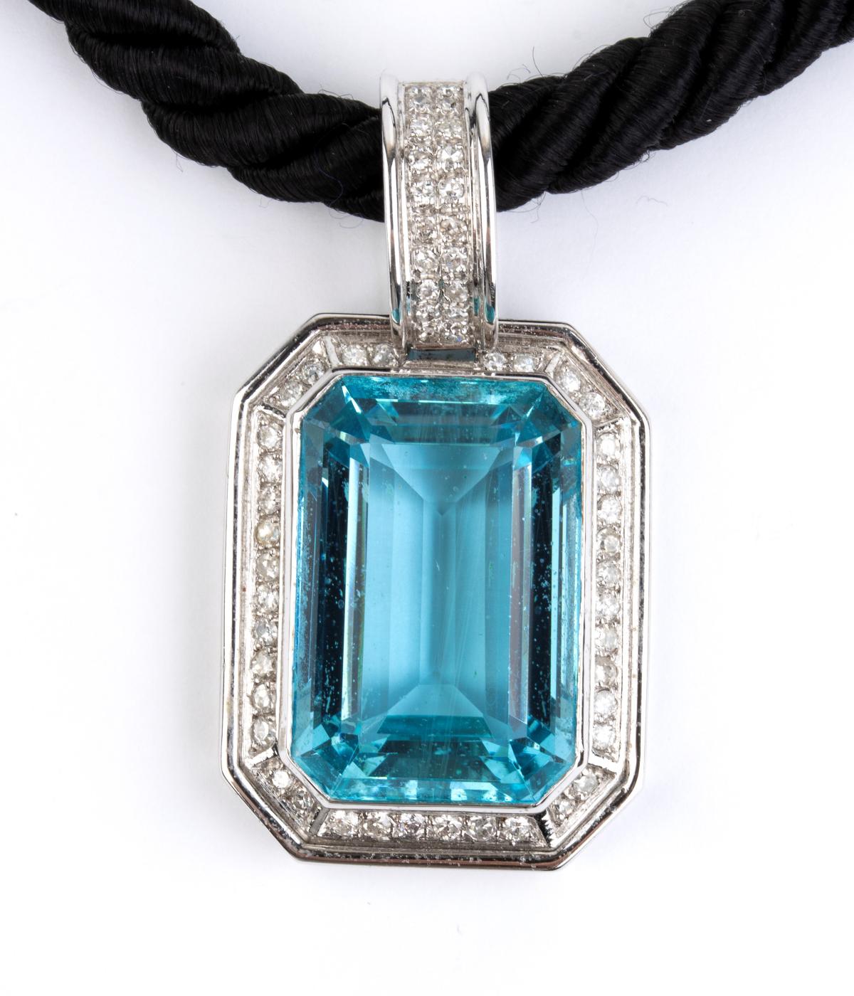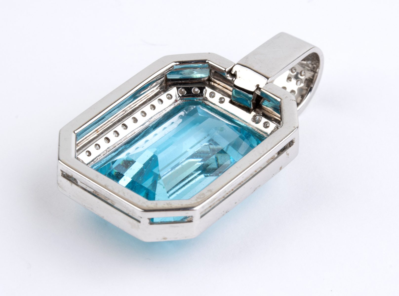 Pendente in oro con acquamarina e diamanti di forma rettangolare in oro...