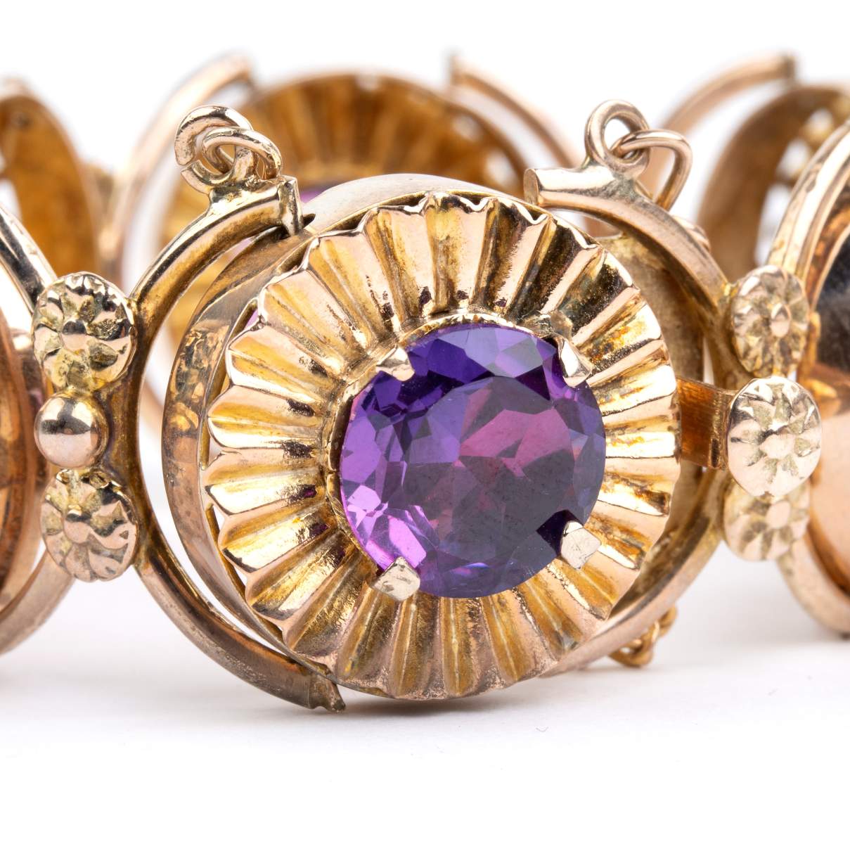 Bracciale in oro con ametiste montatura a motivo floreale in oro a basso...
