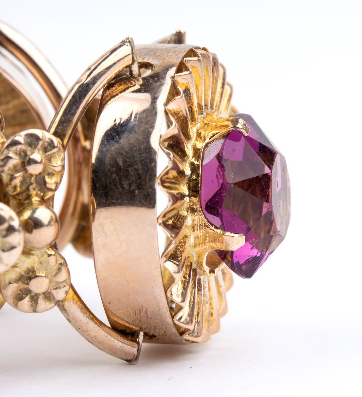 montatura a motivo floreale in oro a basso titolo impreziosito da n. 06 ametiste.