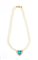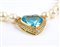 oro giallo 18k, ad un filo di perle coltivate d'acqua salata, con centrale a forma di cuore, incastonato con topazio azzurro incorniciato da diamanti.