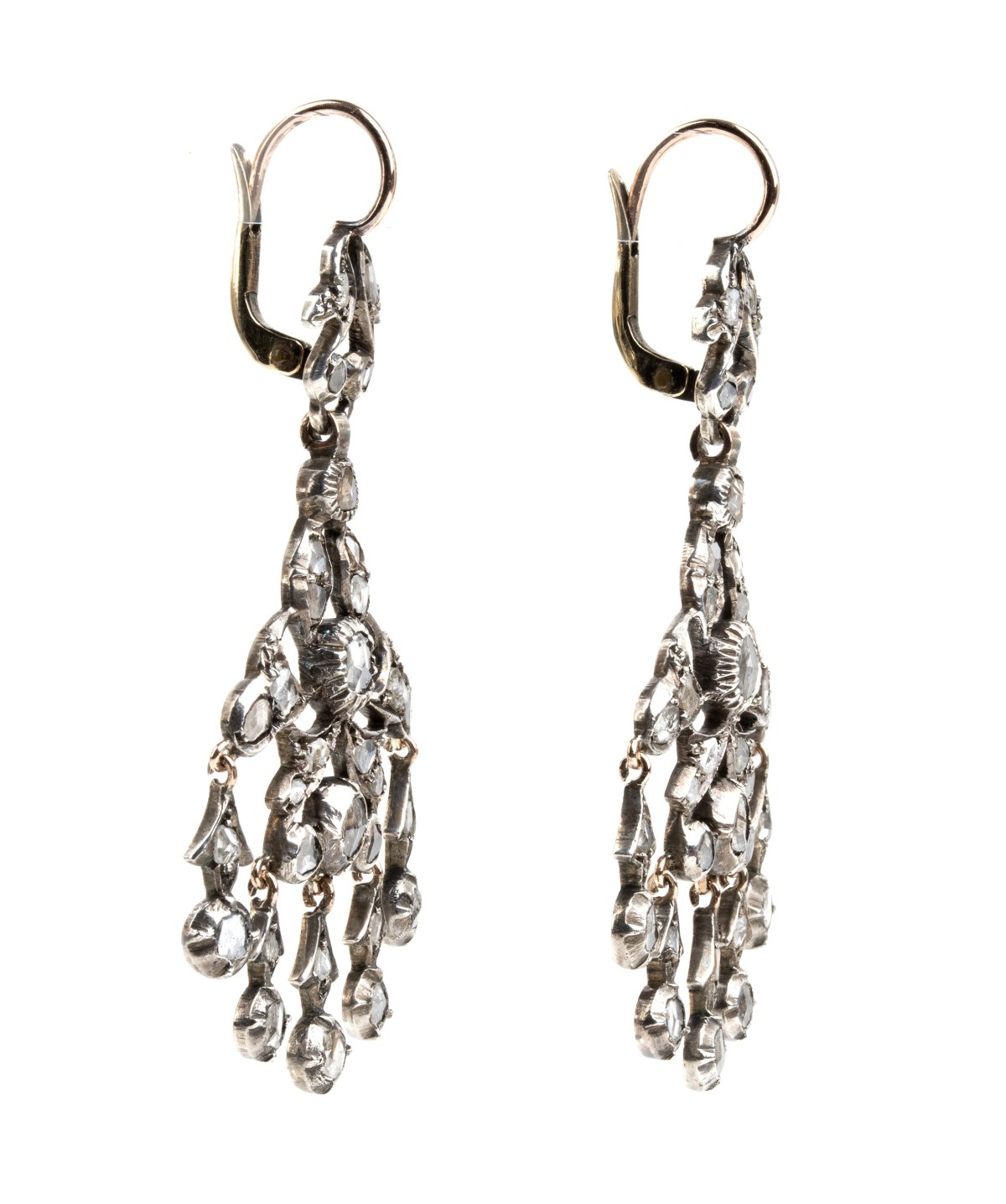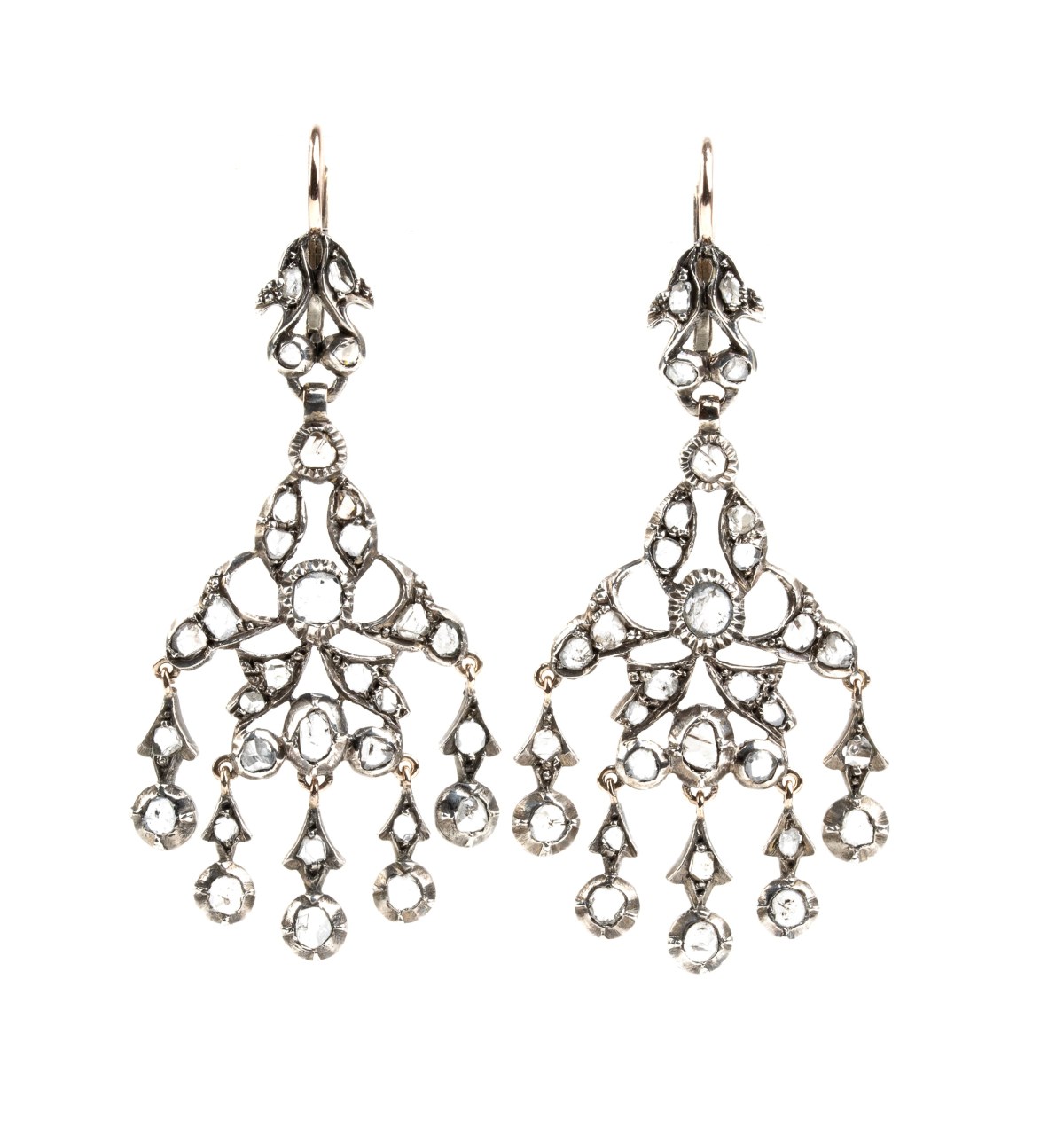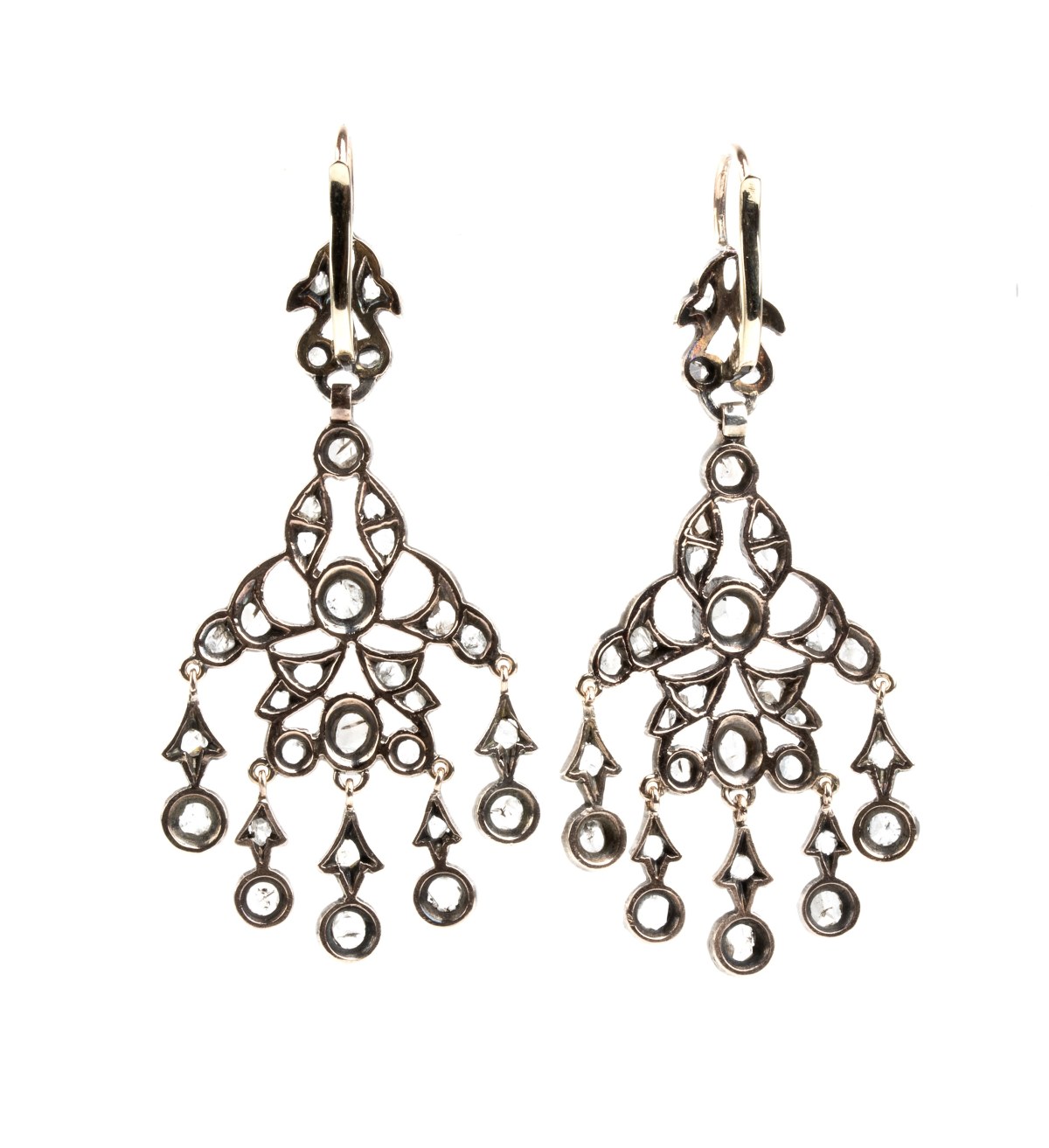 Orecchini pendenti con diamanti Fine XIX secolo in oro e argento,...
