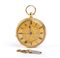 cassa anonima in oro giallo 18k con meccanismo a cilindro completo di chiave di ricarica, quadrante finemente lavorato con indici romani e sfere nere.
