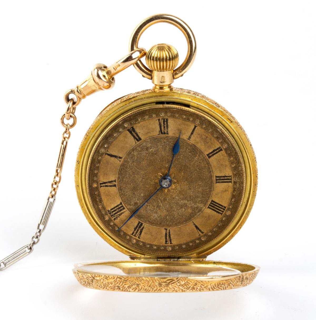 Orologio da tasca in oro con catena Fine XX secolo cassa in oro 18k finemente...