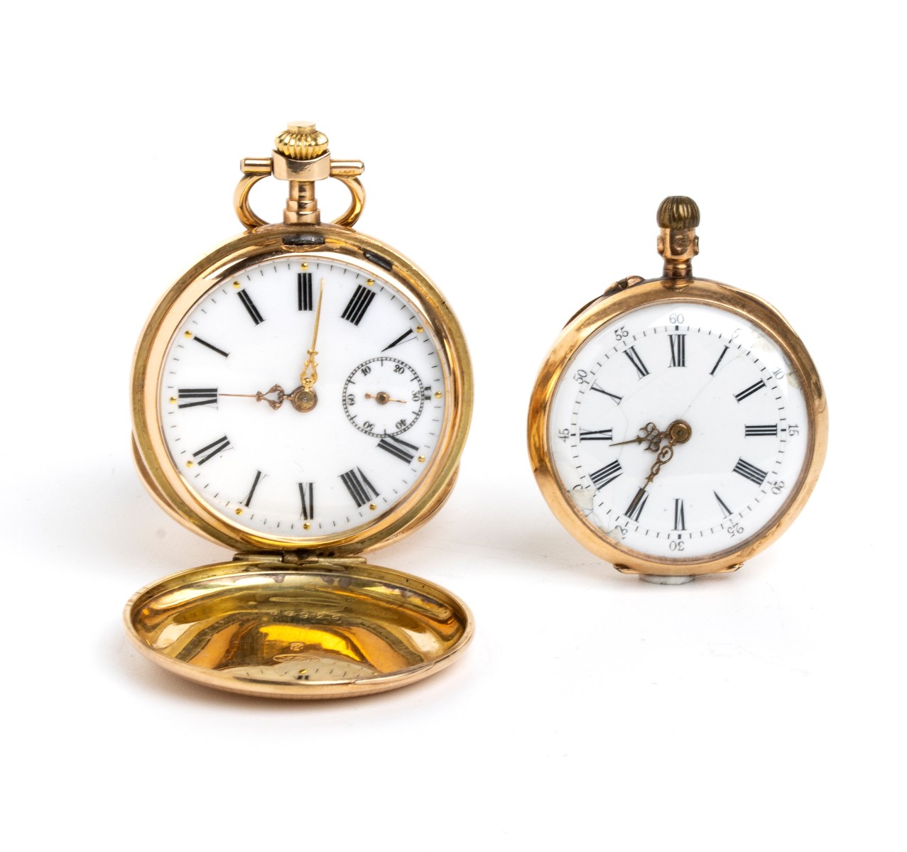 Coppia di orologi da tasca in oro fine XX secolo 1) Un orologio da tasca con...
