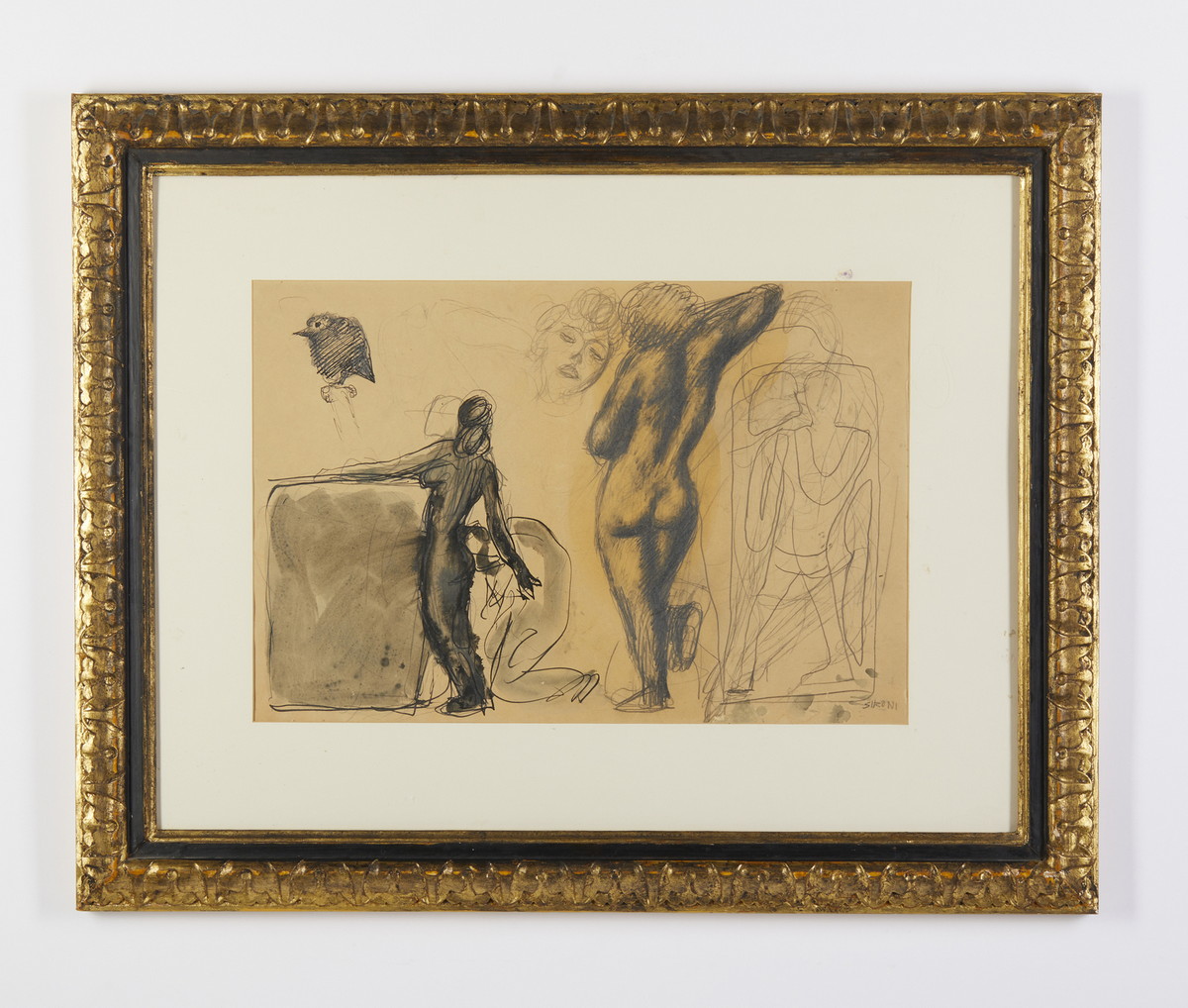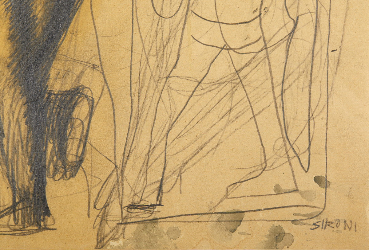 SIRONI MARIO (1885 - 1961) COMPOSIZIONE (1953).Tempera, matita e inchiostro su carta intelata. Cm 50,00 x 34,00. firma apocrifa