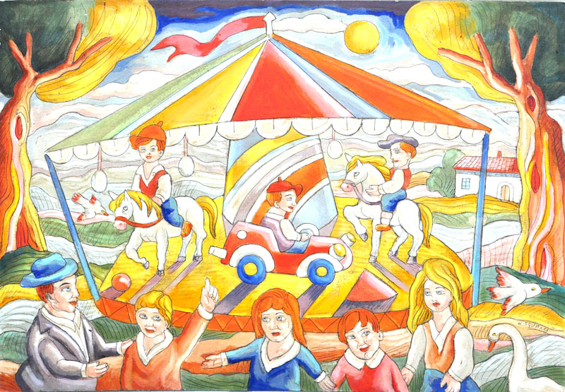 Lotto 501 | ROBERTO SGUANCI La giostra Olio su cartone cm. 50x70 Firma in basso Firma e...