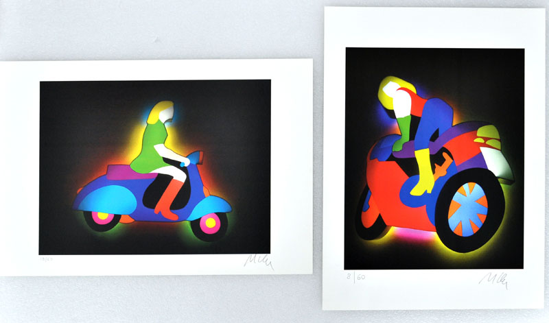 MARCO LODOLA Lotto unico di due litografie a colori - Ragazza in vespa – es. 19/60 cm. 34x48 - Ragazza sulla moto – es. 8/60 cm. 48x34 Firma e tiratura in basso