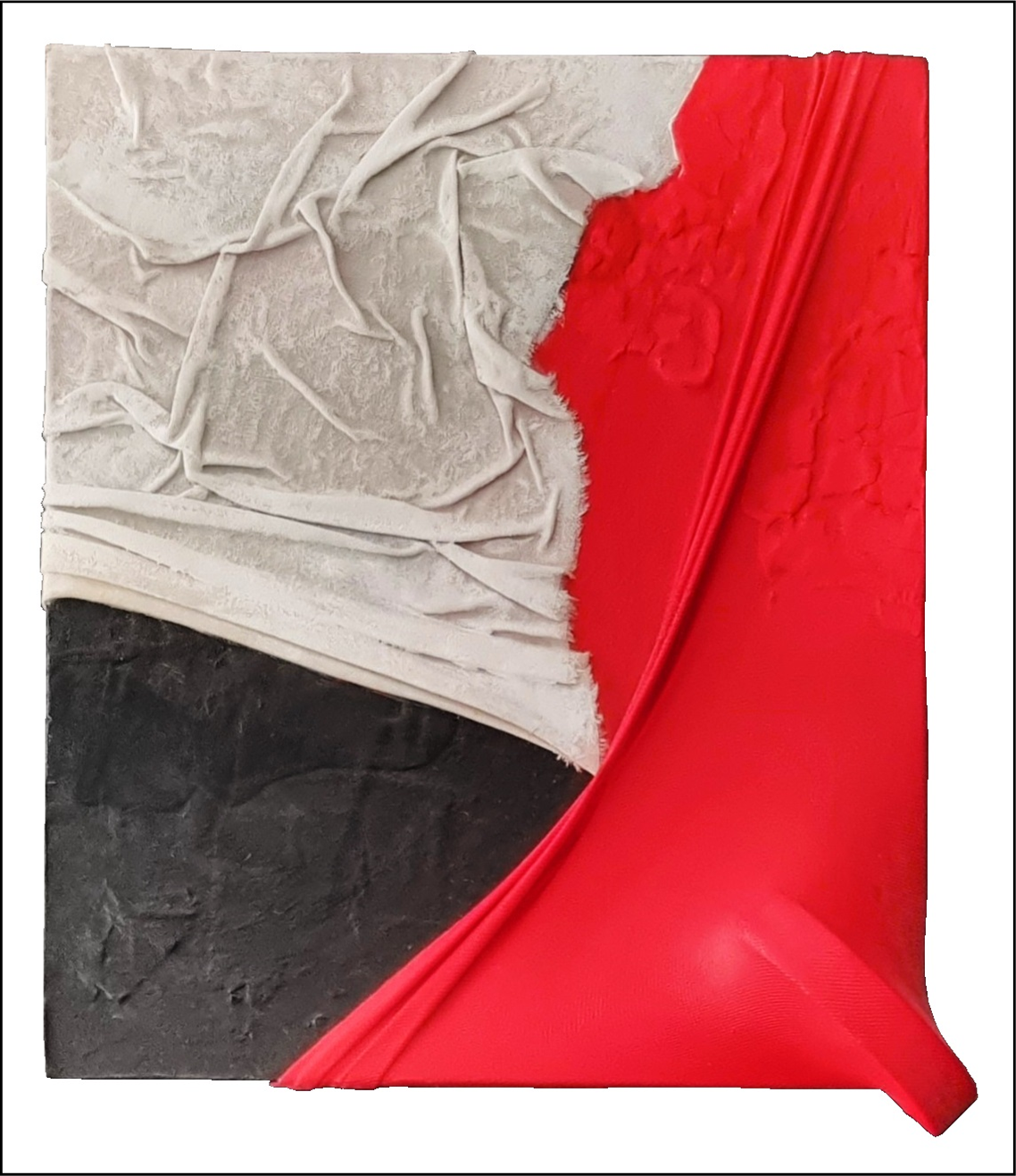 RIGEL HECTOR Roma 1957 "Superficie rossa in tensione" Vernice acro-vinilica, tela e tela estroflessa applicate su tavola cm 16x18, del 2012. Al verso firma e numero d'archivio. Archivio su foto a cura dell'Archivio Opere Hector Rigel.