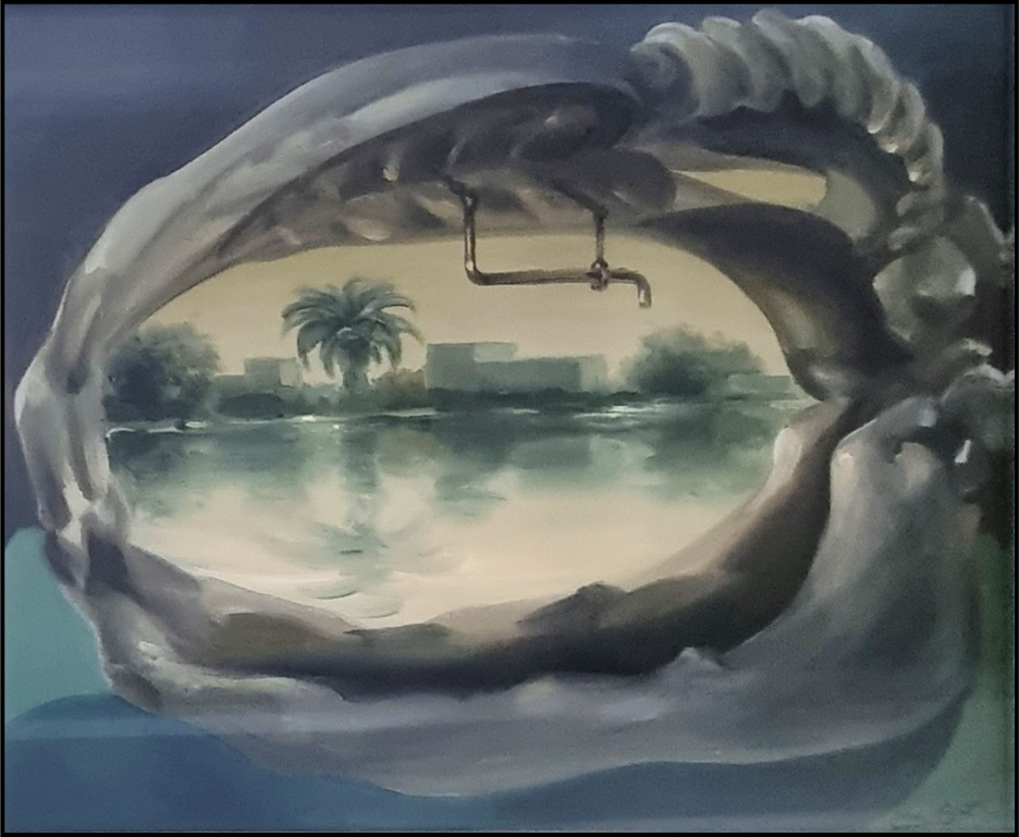 PIGNATELLI ERCOLE Lecce 1935 "Oasi" Olio su tela cm 55x45 del 1981. Firmato sul fronte in basso a destra. Sul retro titolo, firma, anno e dedica.