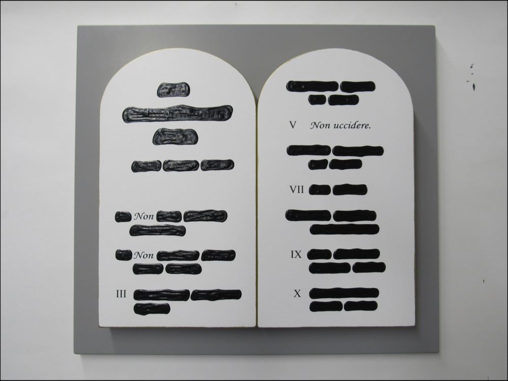 ISGRO' EMILIO Barcellona Pozzo di Gotto 1937 "Non uccidere" Serigrafia su tavola cm 45x40 del 2017. Multiplo P.A.. Certificato di garanzia a cura dell'Editore.