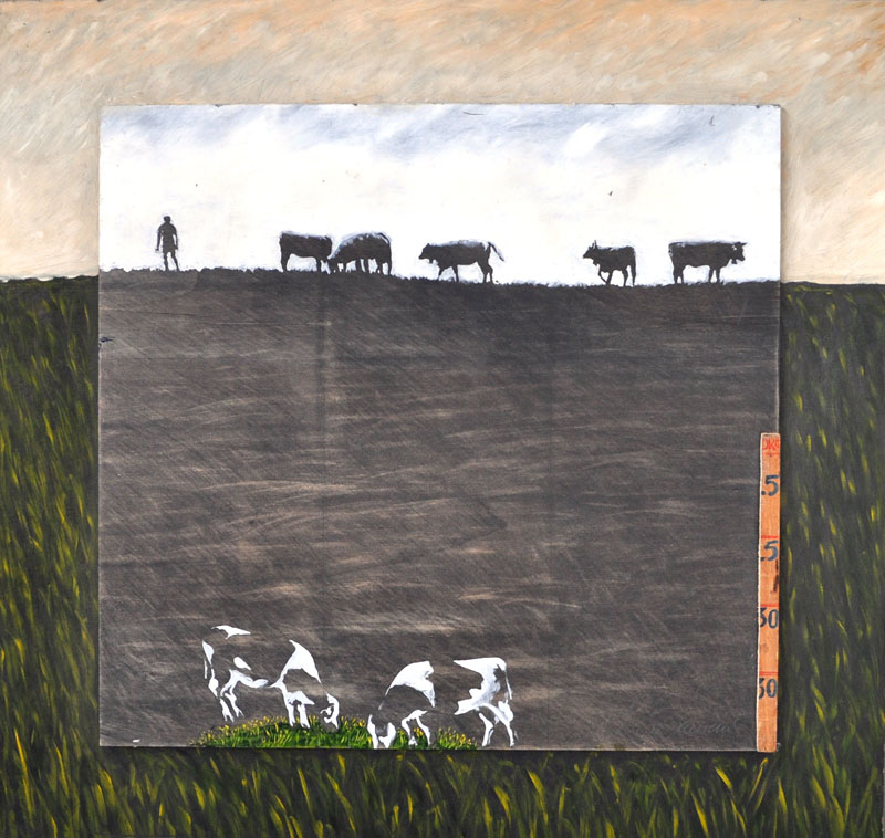 LORENZO LAZZERI Senza titolo, 1998 Grafite, collage e olio su tavola cm. 80x80 Firma in basso Firma, data e titolo sul retro
