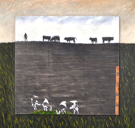LORENZO LAZZERI Senza titolo, 1998 Grafite, collage e olio su tavola cm....