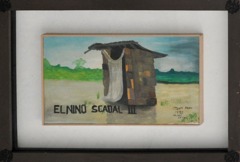 JOHN NZAU El nino Scadal III, 1998 Olio su tela con cornice dipinta cm. 30x50...