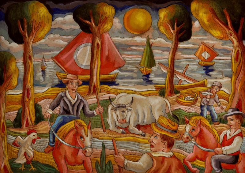 ROBERTO SGUANCI Scena campestre Olio su cartone cm. 50x70 Firma in basso...